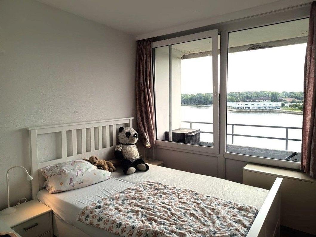 Vom großen Wohn-Esszimmer gelangt man auf den Südbalkon mit tollem Blick zum Binnensee und seitlich zum Hafen.