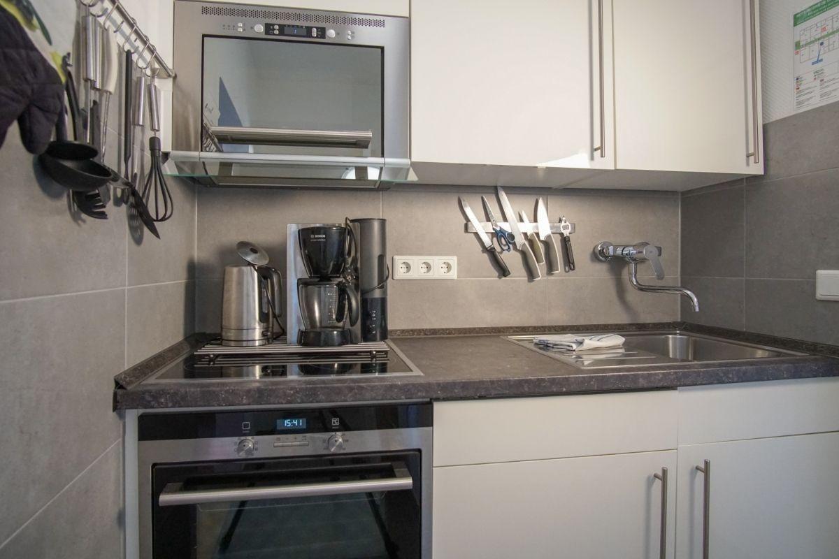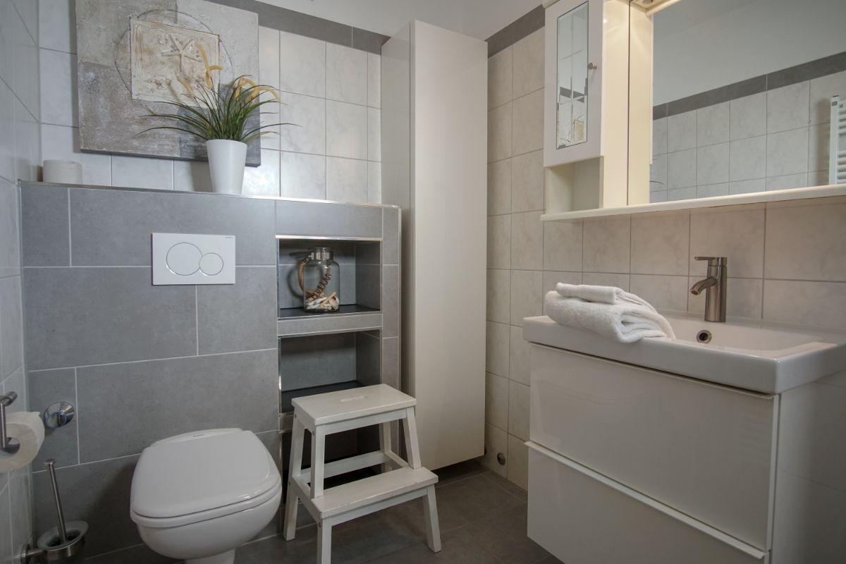 Die gemütliche 2 Zimmer-Wohnung befindet sich in der zweiten Etage des Hauses (Aufzug vorhanden) und verfügt auf ihren ca. 41 m² über einen kombinierten, hellen Wohn-Schlafbereich mit einem gemütlichen Doppelbett (ca. 180x200), sowie eine großzügige Einbauküche. Vom Wohnbereich aus hat man einen tollen Ausblick direkt zum Meer. Das Kinderzimmer verfügt über ein Etagenbett - ideal für Kinder und Teenager.
