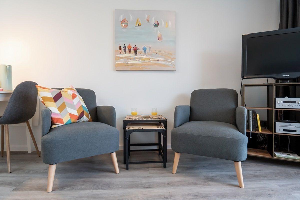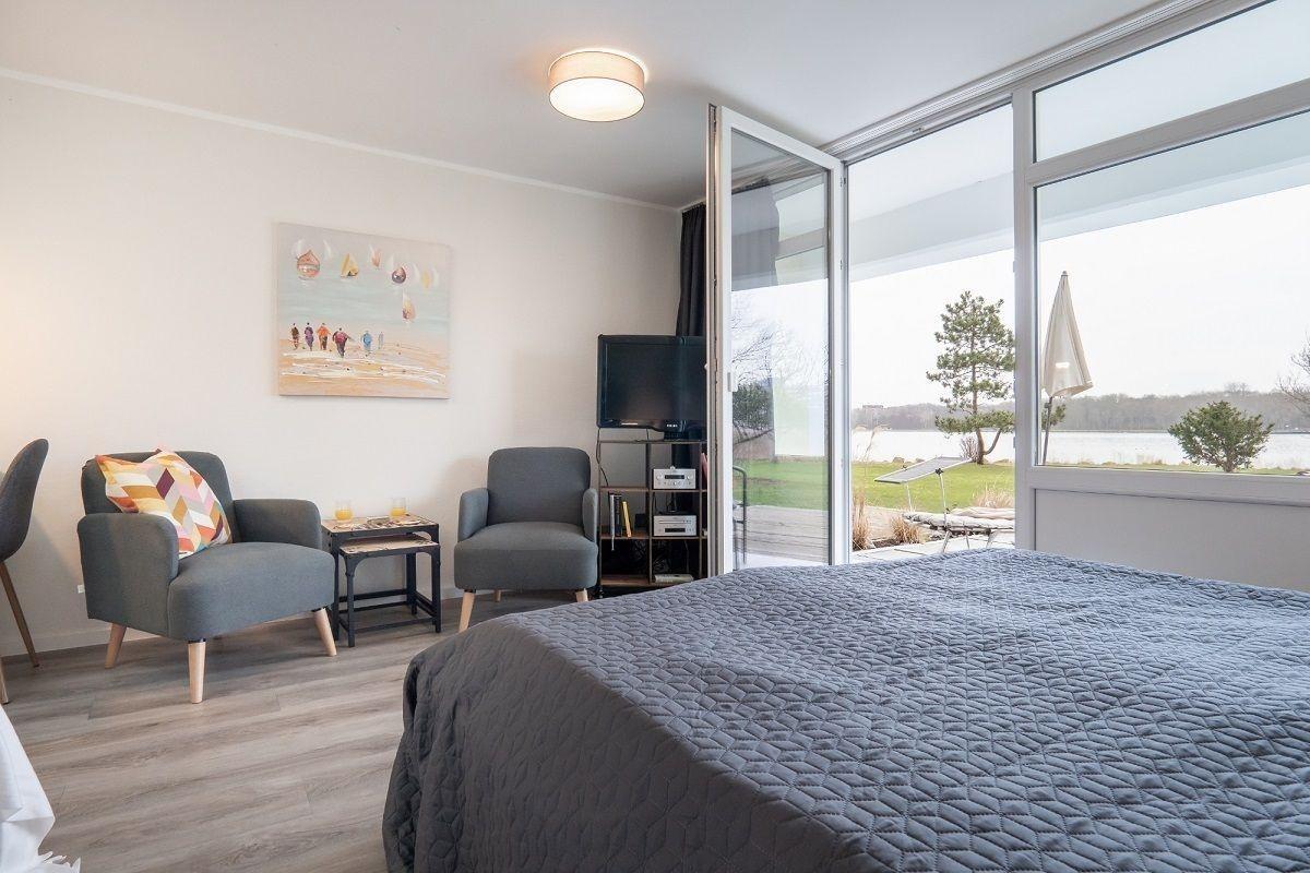 Moderne Studiowohnung mit Süd-Terrasse und Blick auf den Binnensee in Heiligenhafen.