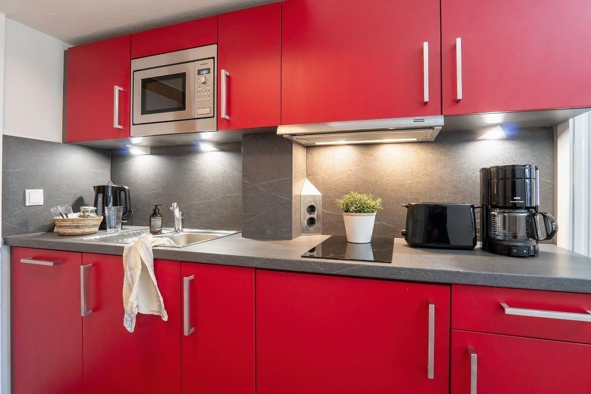 Die moderne Studiowohnung befindet sich im Erdgeschoss des Hauses und verfügt auf ihren 31 m² über einen kombinierten, hellen Wohn-Schlafbereich mit einem gemütlichen Doppelbett (ca. 160x200), sowie eine großzügige Einbauküche.
