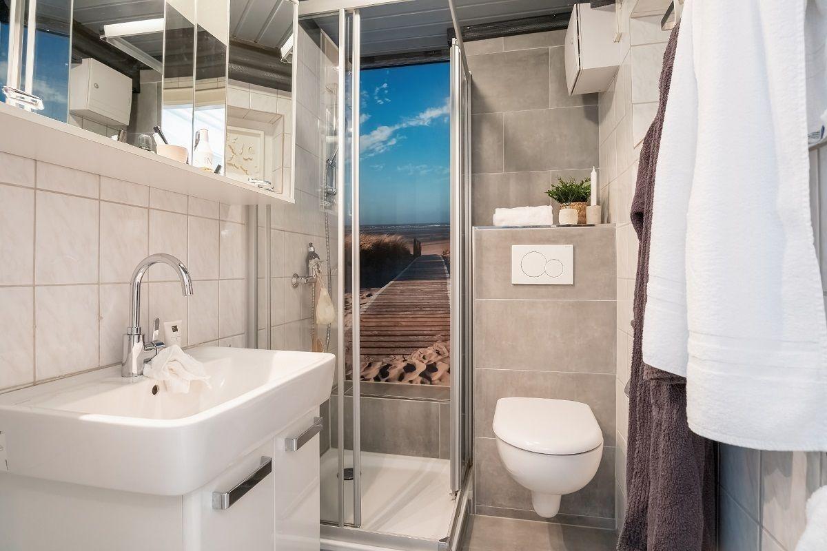Die gemütliche, helle 31m²-Wohnung befindet sich im Erdgeschoss und verfügt über eine tolle Südterrasse mit Blick zum Binnensee. Der Wohn-Schlafbereich ist mit einer gemütlichen Sofaecke und einem großen Doppelbett (ca. 2x90x200cm) ausgestattet. Die kleine Kochnische verfügt neben den gängigen Kochutensilien zusätzlich über einen Minigrill, eine Mikrowelle und ein Zwei-Platten-Kochfeld.