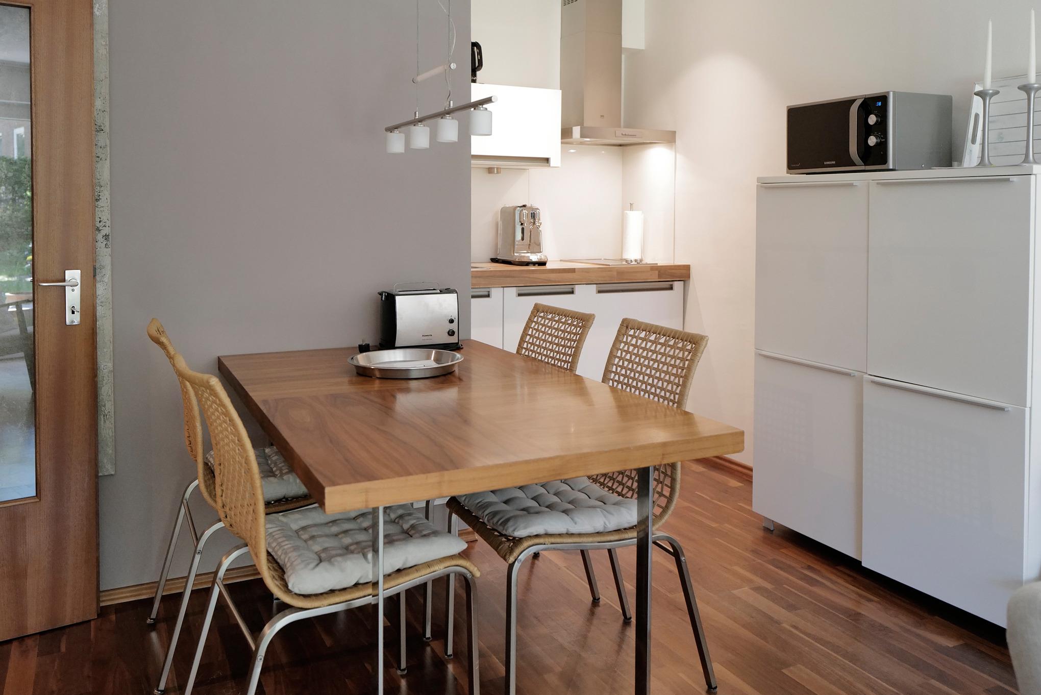 Herzlich willkommen! - Sie erwartet eine moderne, helle und lichtdurchflutete Ferienwohnung. Die Ferienwohnung befindet sich direkt am Binnensee von Heiligenhafen, optimal gelegen zwischen Strand, Altstadt, Hafen und Ferienpark. Die liebevoll und modern ausgestattete Nichtraucher-Ferienwohnung liegt im Erdgeschoss eines Mehrfamilienhauses. Die wohnliche Gesamtausstattung mit gutem Komfort bietet alles was man für einen Urlaub braucht. Im Wohnzimmer finden Sie eine moderne Sitzgarnitur, einen separaten Essplatz sowie einen Flachbildfernseher, CD-Player, DVD-Player und Internet. Das hochwertige und moderne Badezimmer mit einer 100 cm x 115 cm breiten Dusche rundet das Ganze ab. Im Keller steht eine Waschmaschine und Trockner zur Verfügung. Für Kinder bieten wir ein Reisebettchen, Kinderhochstuhl, Dreirad, Kinder-Roller und diverse Strandspielzeug an. Zu der Ferienwohnung gehören eine Sonnenterrasse mit Sitzmöbeln und ein Abstellraum zum Unterstellen von Fahrrädern etc.