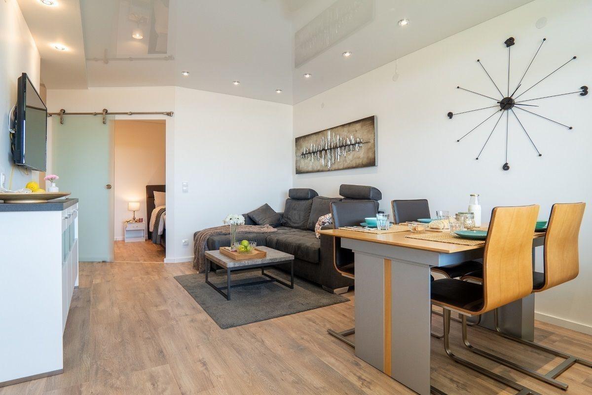 Moderne 2-Zimmer-Ferienwohnung mit Meerblick und Balkon in Heiligenhafen für erholsame Urlaubstage.
