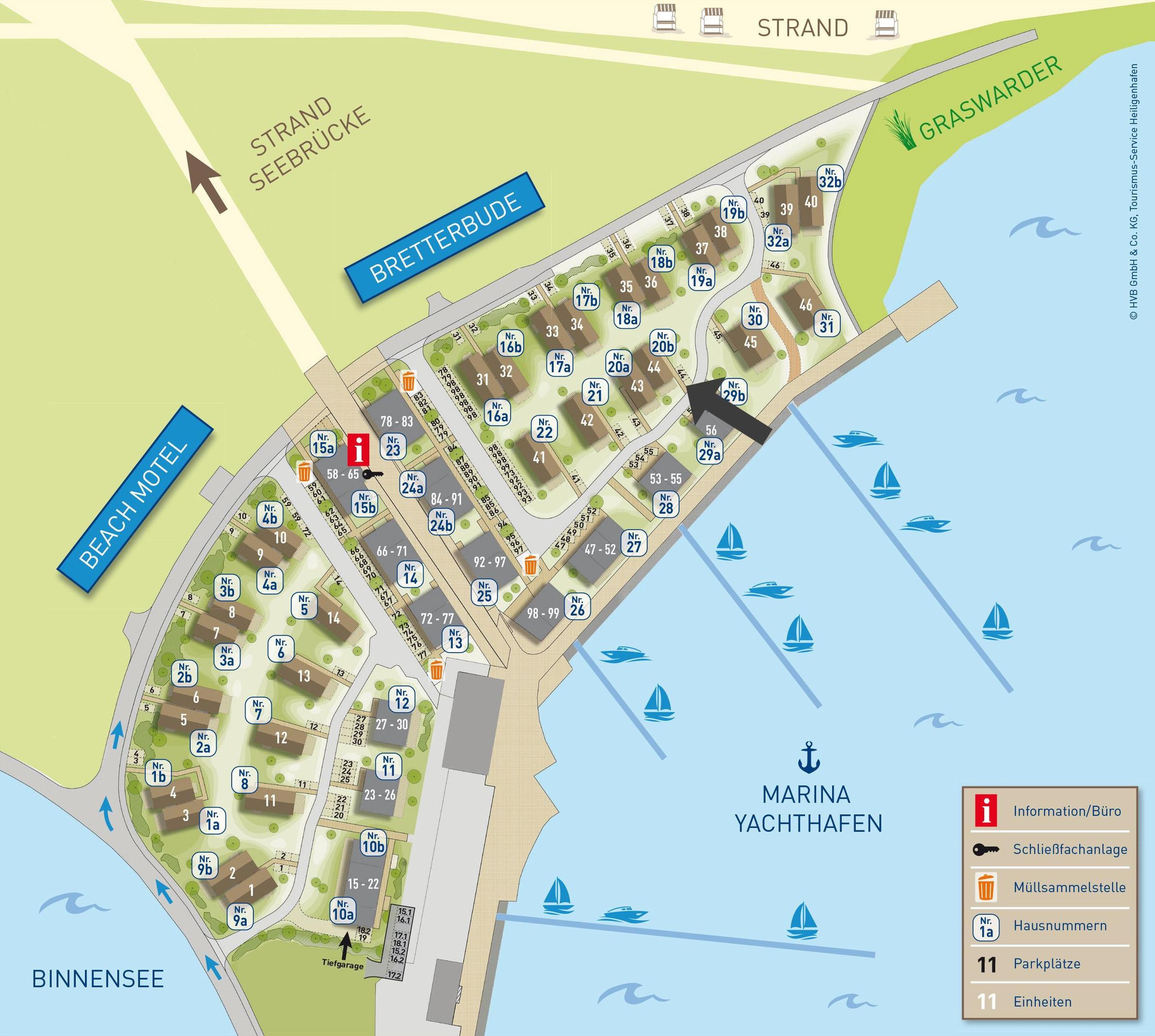 Pro Objekt steht Ihnen ein Pkw-Stellplatz zur Verfügung. Einen weiteren Parkplatz auf dem beschrankten Sandparkplatz auf dem Steinwarder (ca. 200 Meter Entfernung, je nach Lage Ihres Objektes) kann gebührenpflichtig und nach Verfügbarkeit in Anspruch genommen werden.