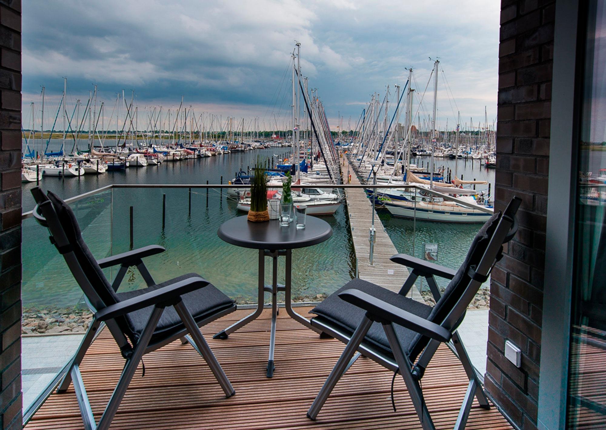 Moderne Ferienwohnung direkt am Jachthafen mit Sauna, Balkon und traumhaftem Meerblick in Heiligenhafen.