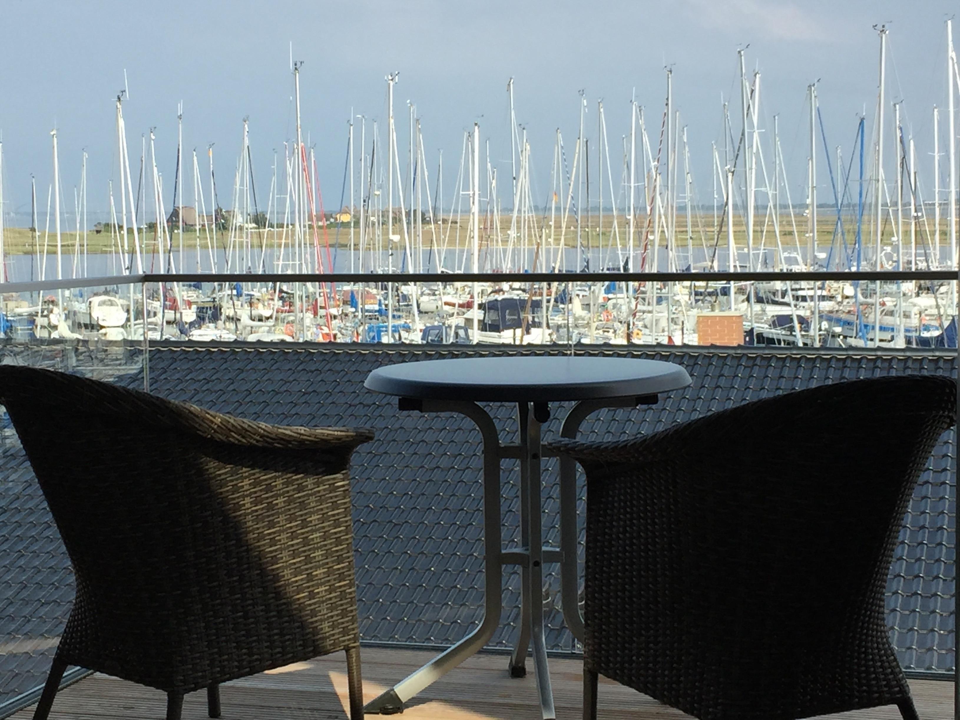 Moderne Ferienwohnung in Heiligenhafen mit herrlichem Yachthafen- und Ostseeblick, zwei Balkonen und Kamin für gemütliche Stunden.