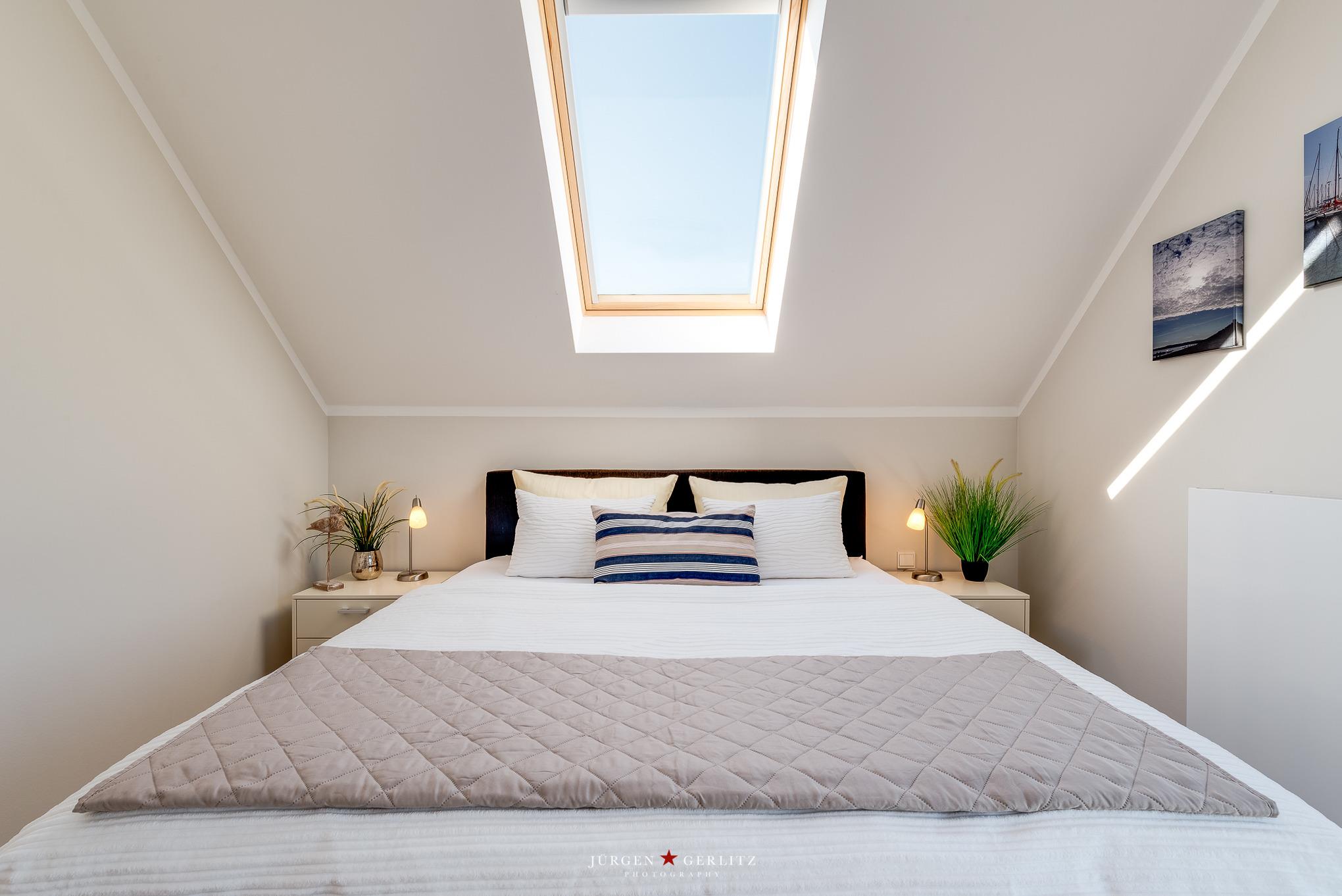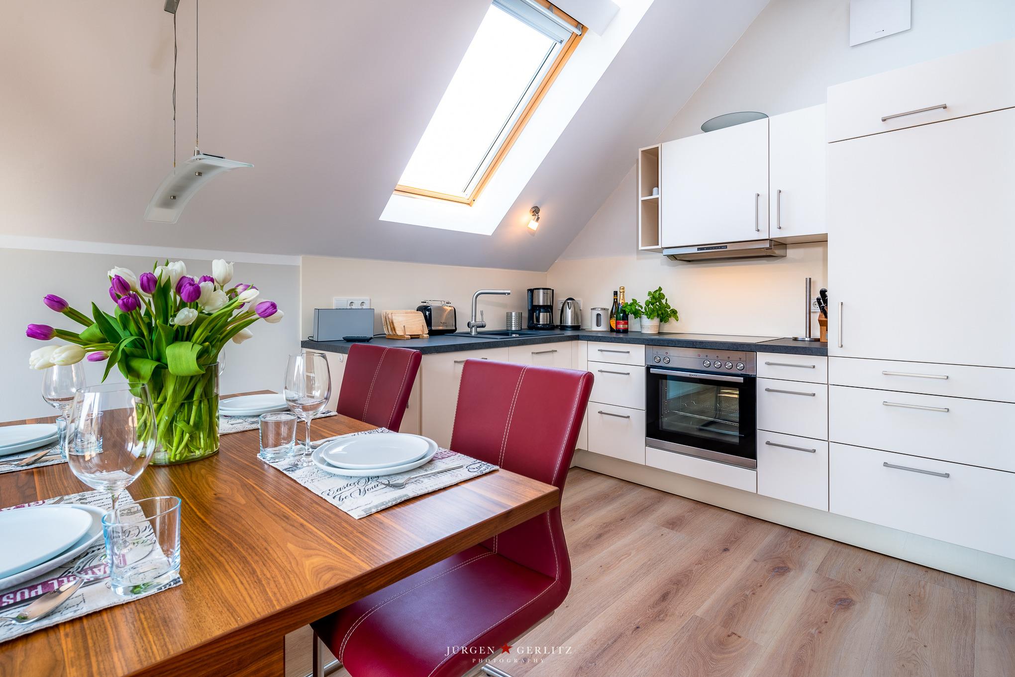 Moderne 2,5-Zimmer-Dachgeschosswohnung nahe Ostseestrand mit Yachthafenblick und eigenem Strandkorb in Heiligenhafen.