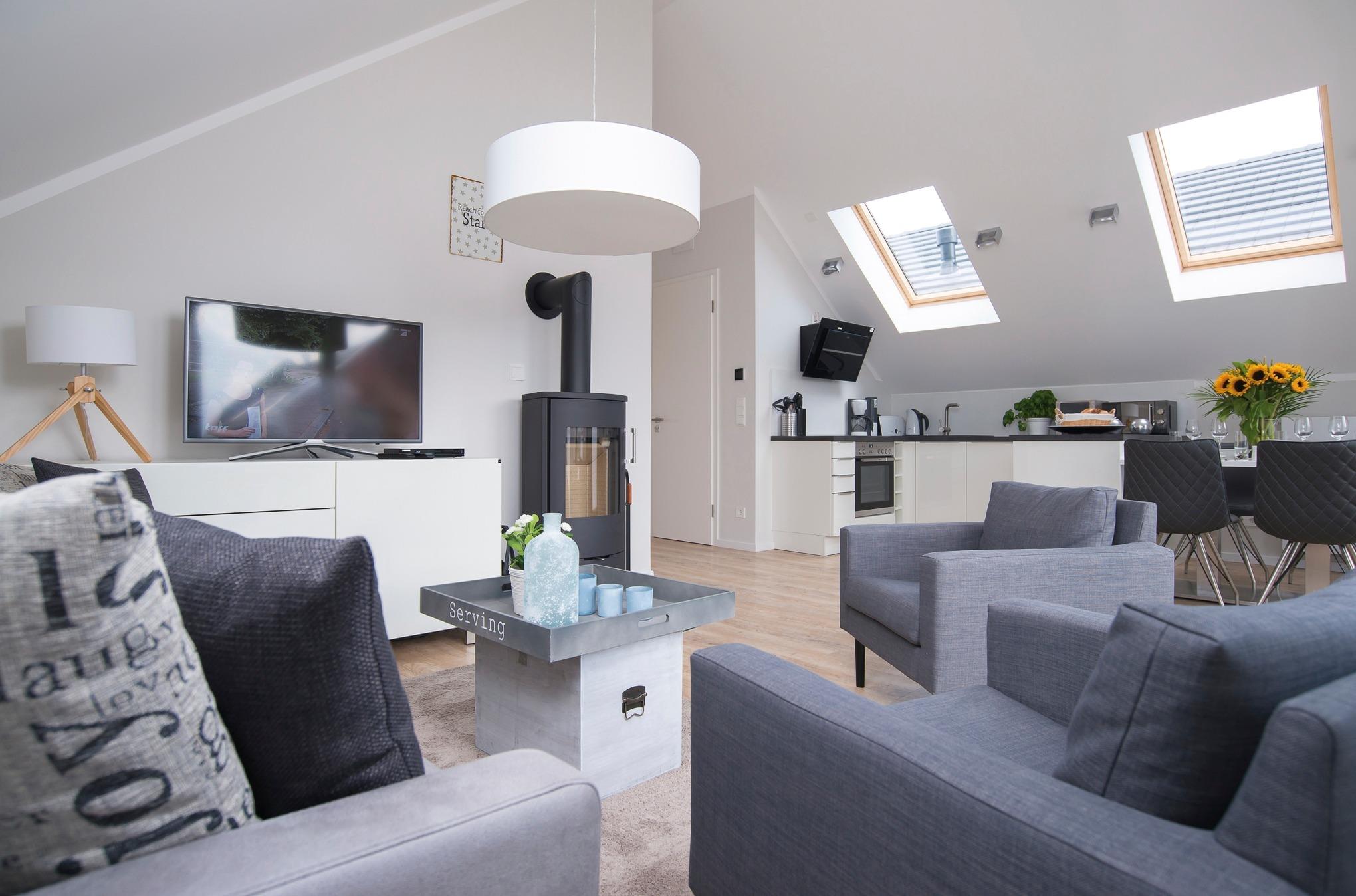 Wunderschöne, lichtdurchflutete und geräumige 70m² große Dachgeschosswohnung, modern und exklusiv ausgestattet, lässt kaum Wünsche offen für einen entspannten und tollen Urlaub.