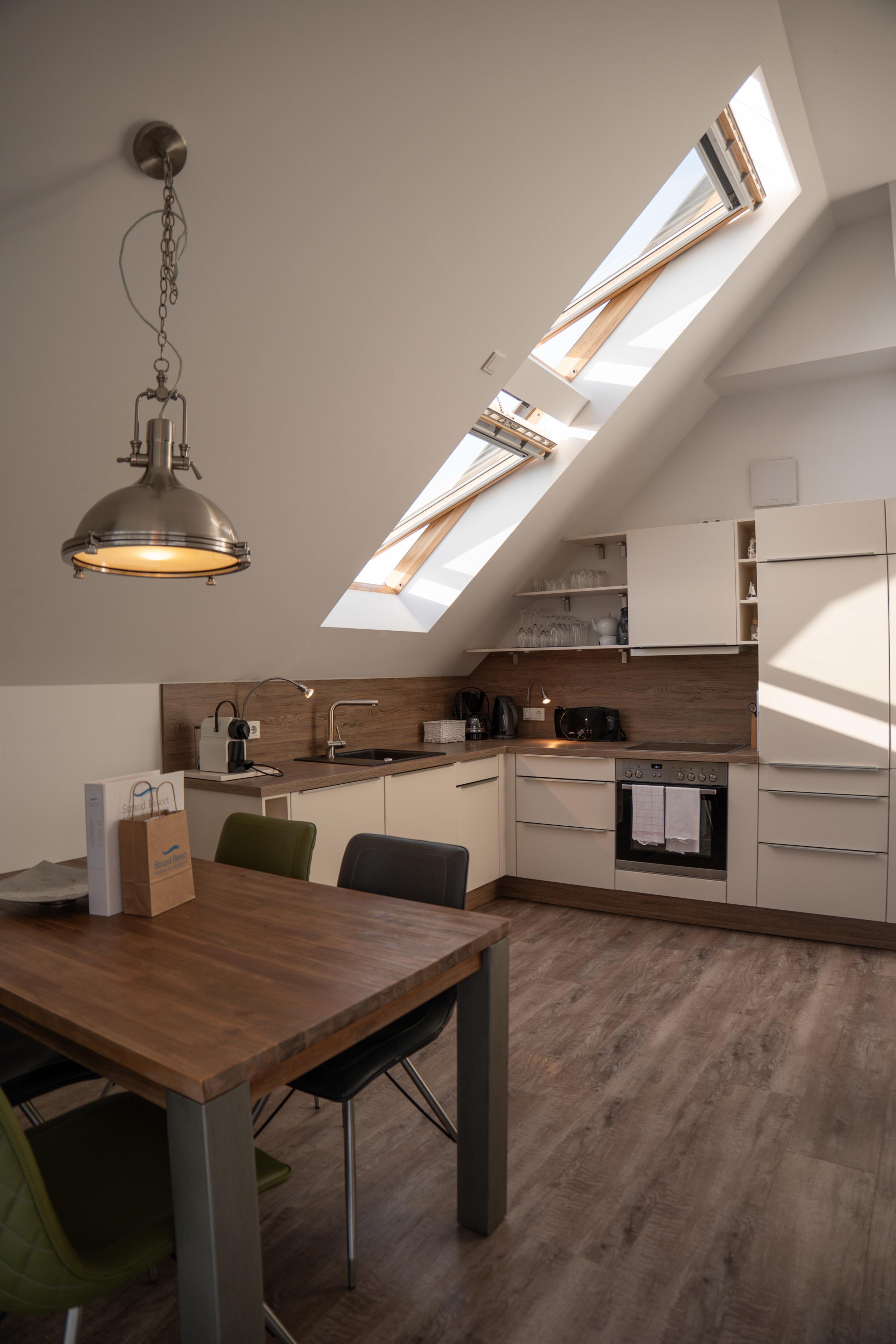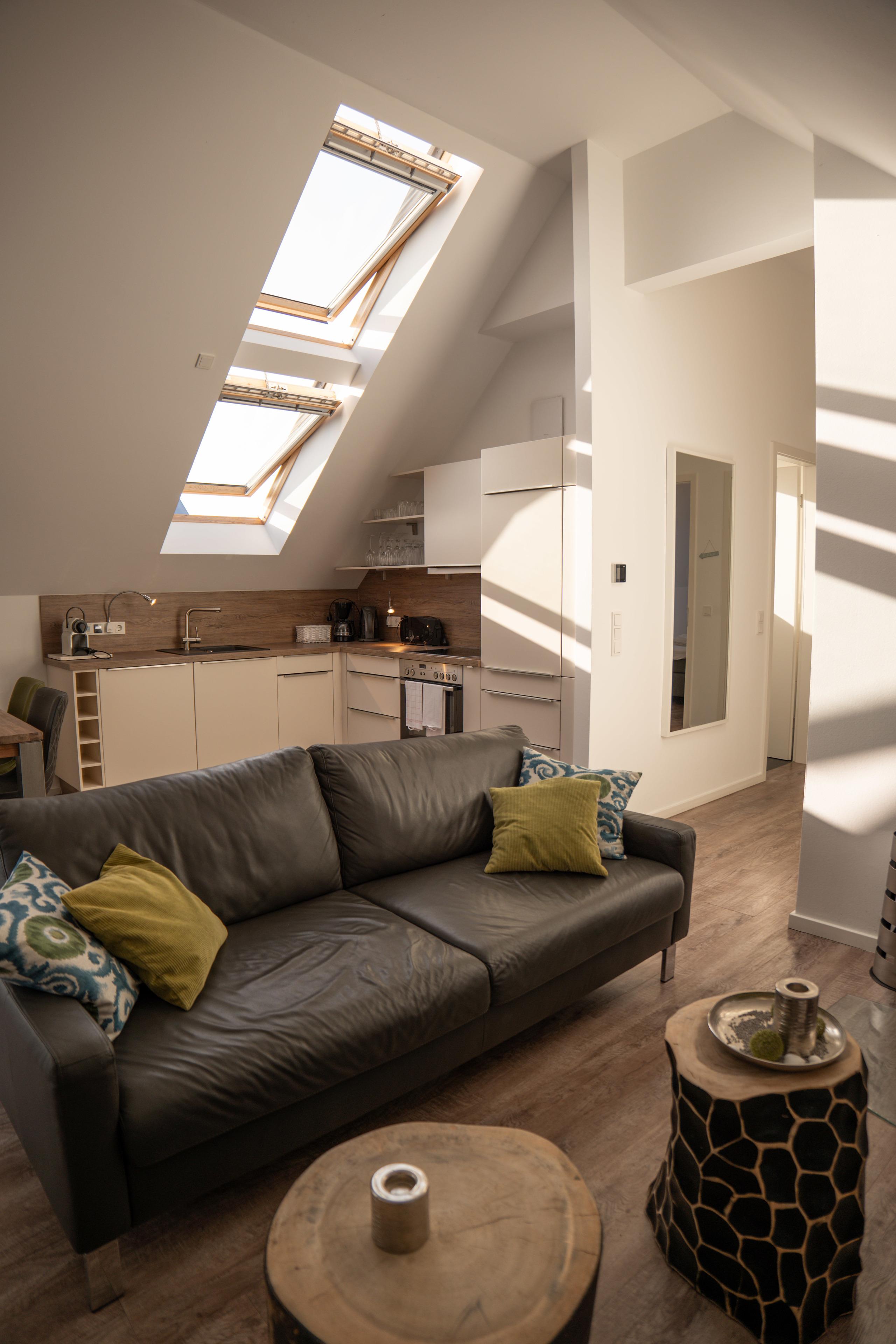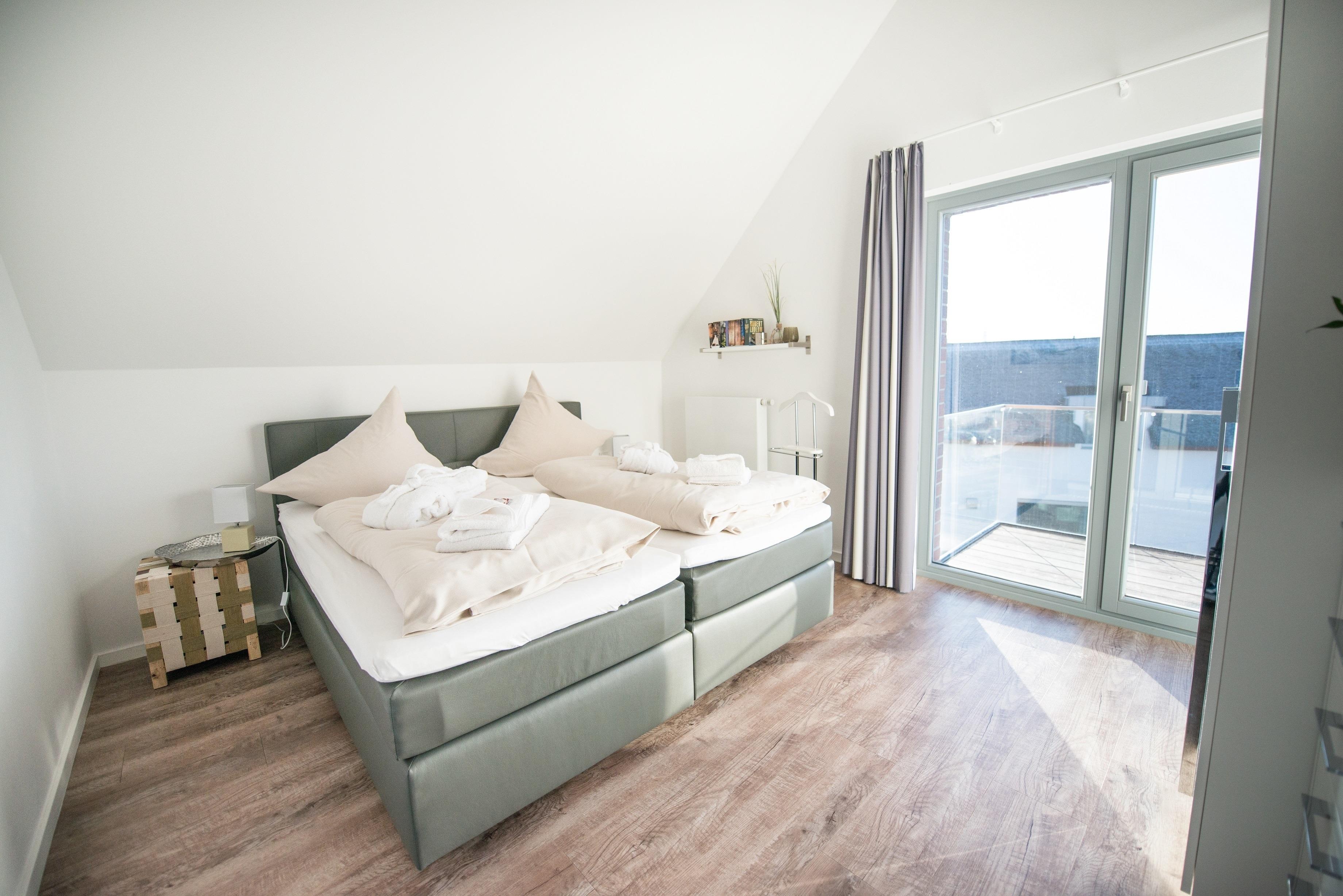 Moderne, helle, lichtdurchflutete und komfortabel eingerichtete Ferienwohnung im Dachgeschoss mit zwei Schlafzimmern und einem eigenen Strandkorb am Meer.