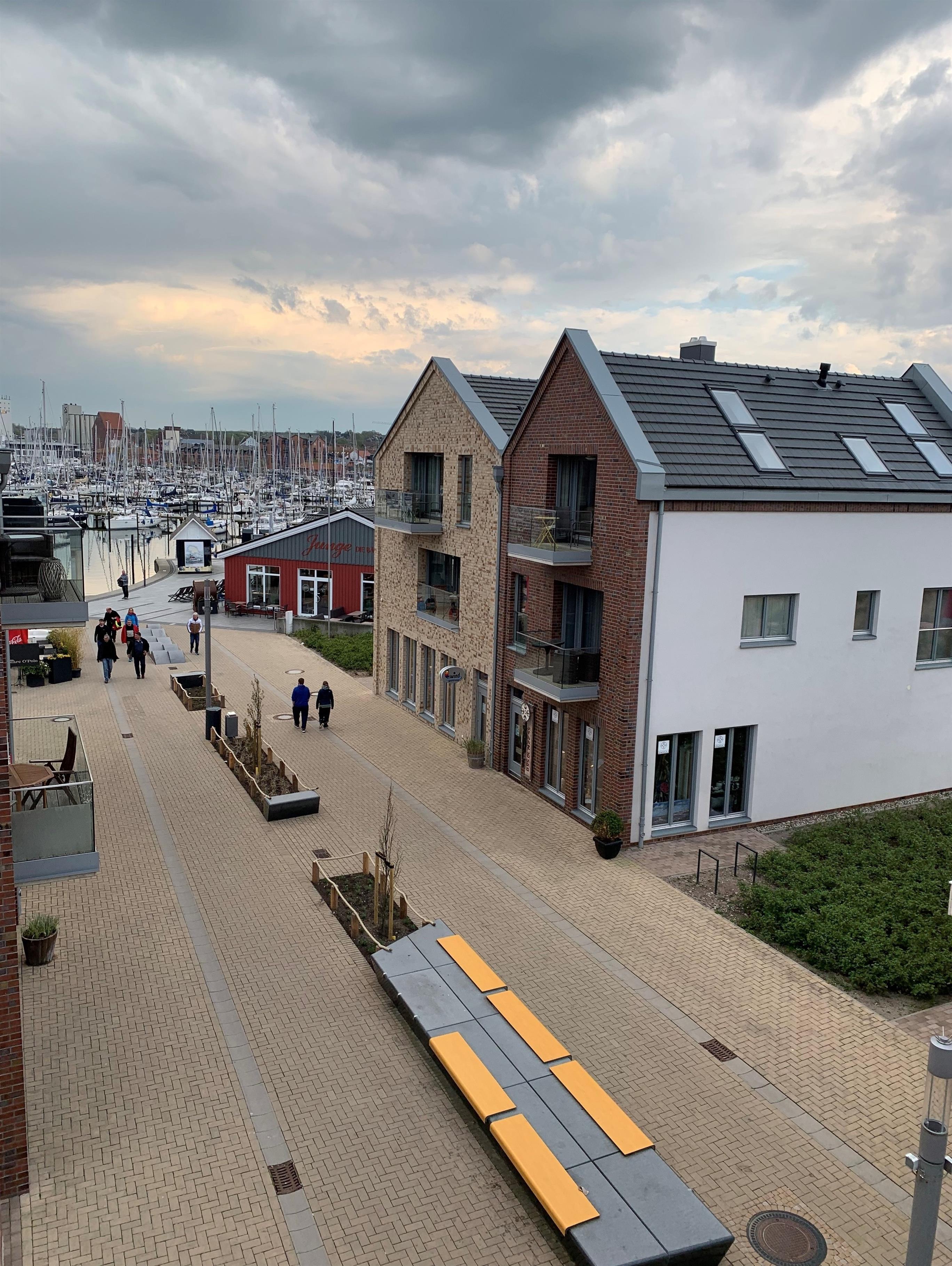 entlang der Seebrücken-Promenade und doch hoch genug, um Abstand zu halten und Ihre Intimität nicht zu stören. Direkt zwischen Strand und Yachthafen gelegen. Besser geht es kaum.