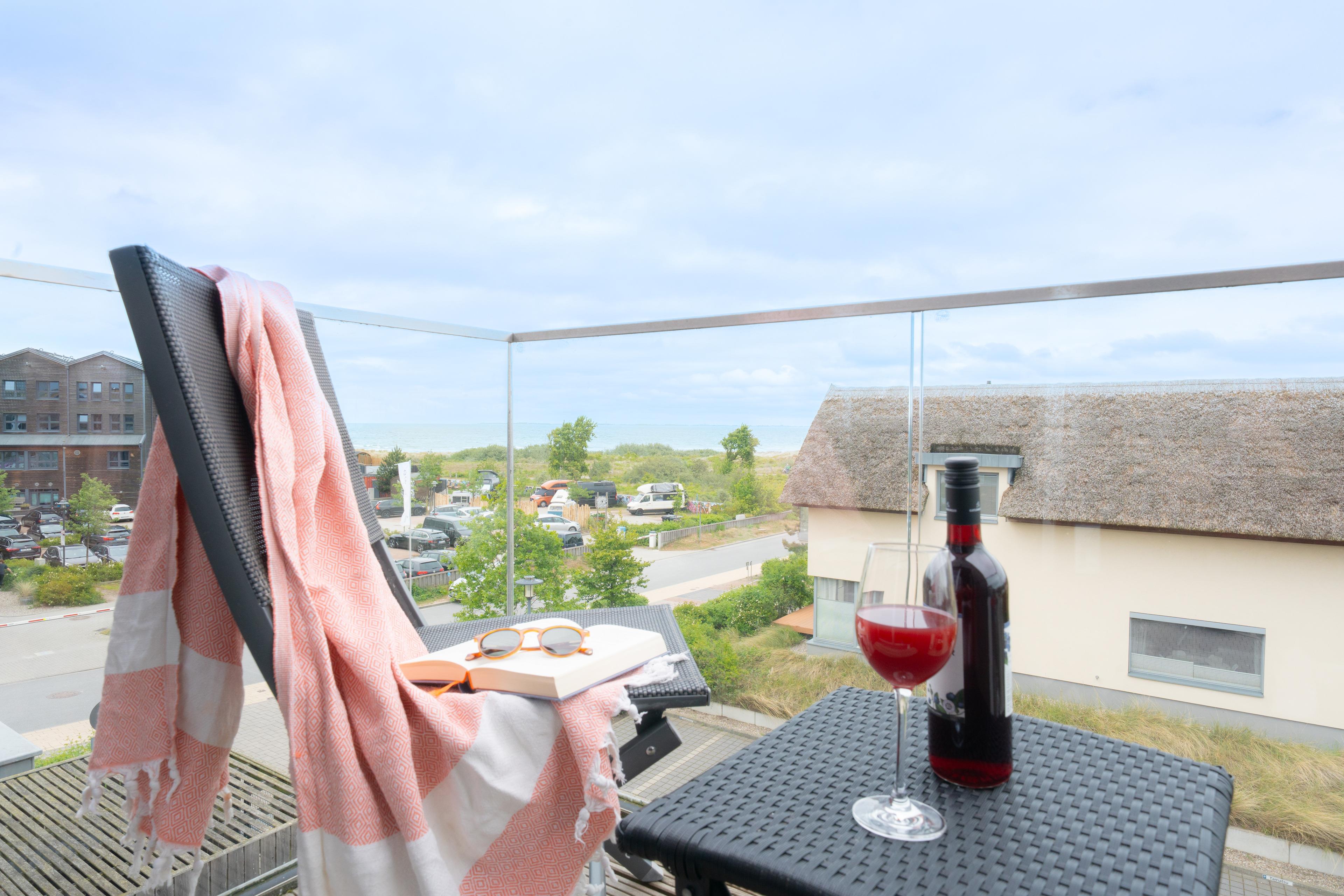 Sie haben von beiden Balkonen aus dem zweiten Stock einen schönen Ausblick auf die Ostsee und Fehmarn bzw. den Yachthafen und die Promenade.