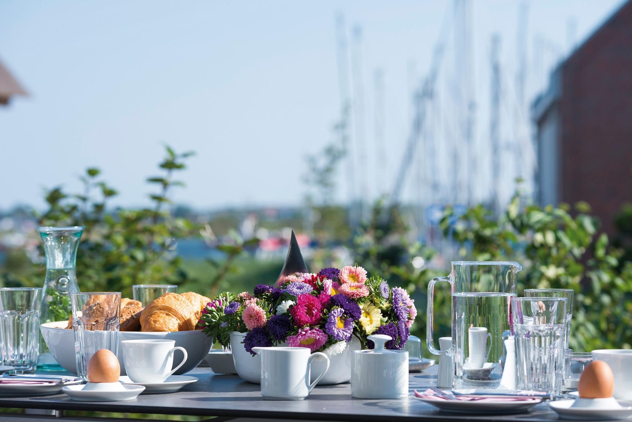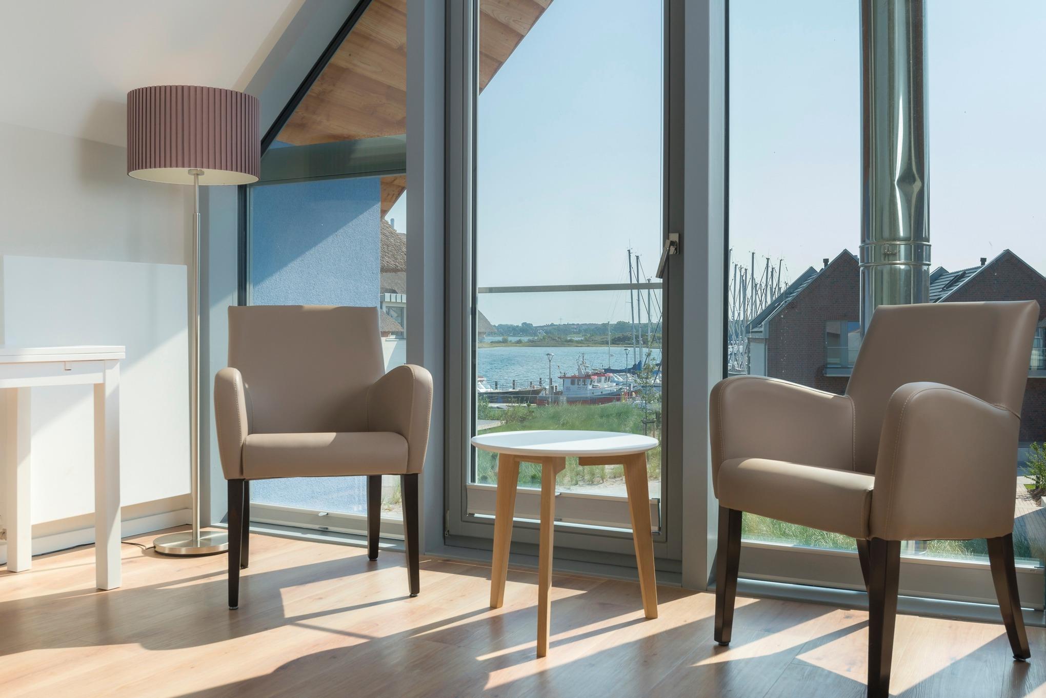 Wunderbarer Blick auf die weite Ostsee und den romantischen Segel-Yachthafen.