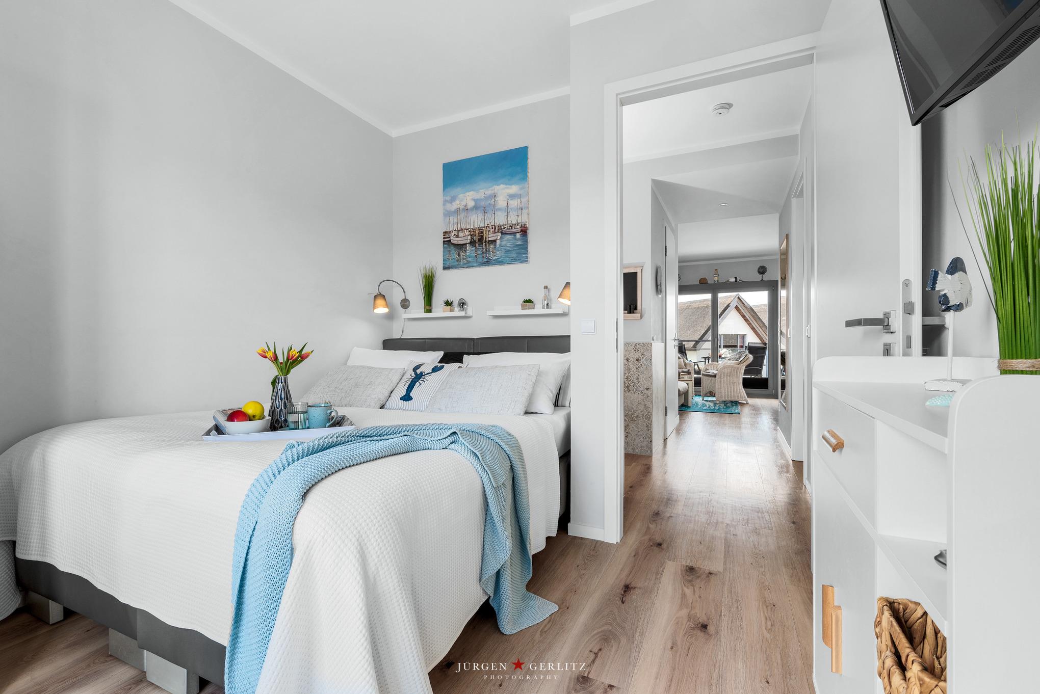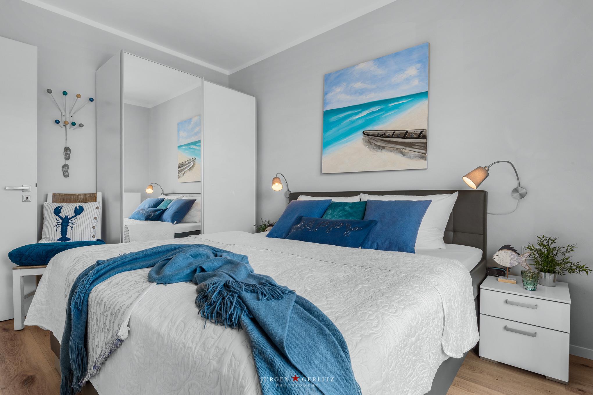 Die beiden Schlafzimmer sind jeweils mit Boxspring-Doppelbetten ausgestattet. Die Bettdecken Sets sind Allergiker geeignet, auch ein Kinderreisebett steht bereit. TV-Geräte gehören zum Standard.