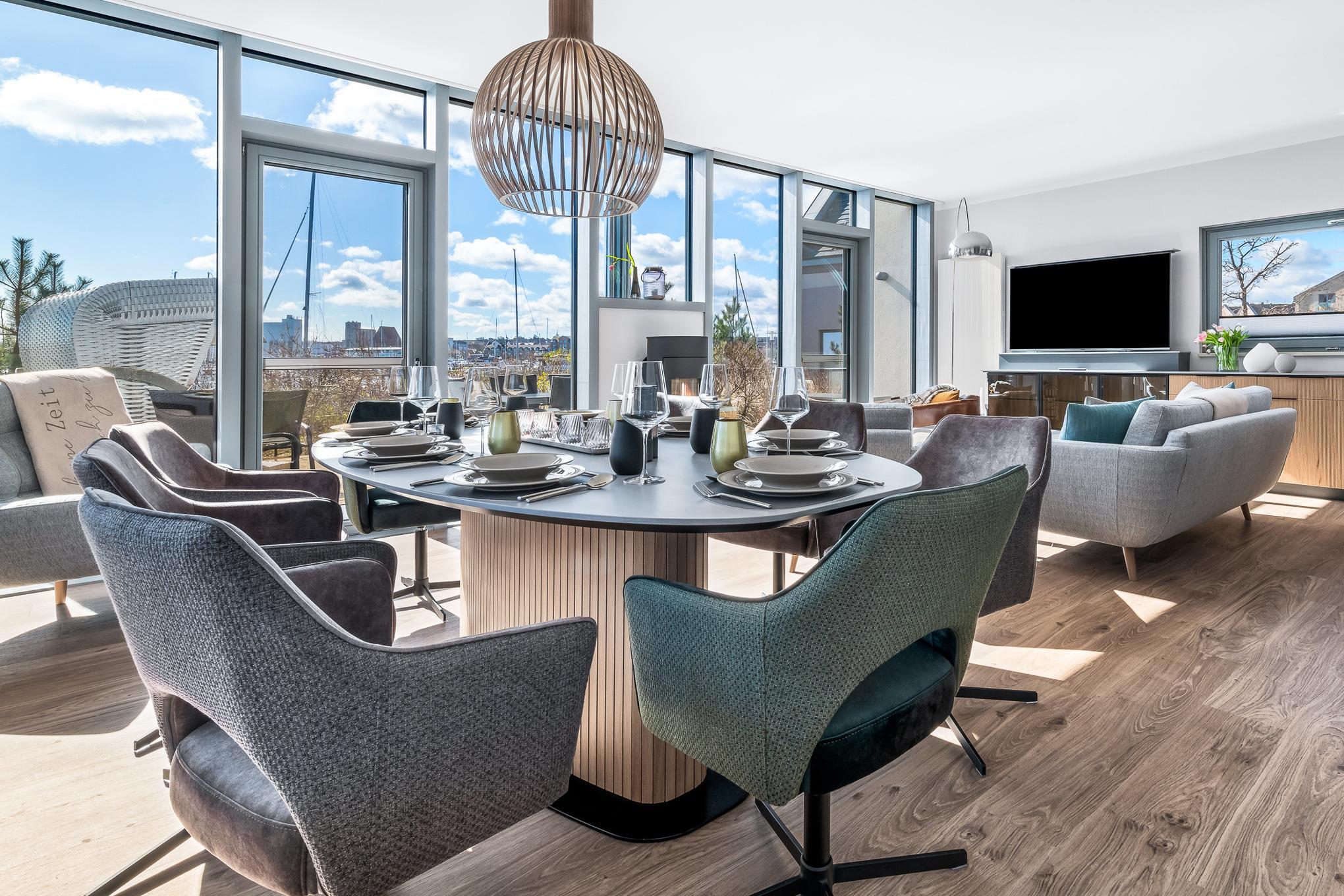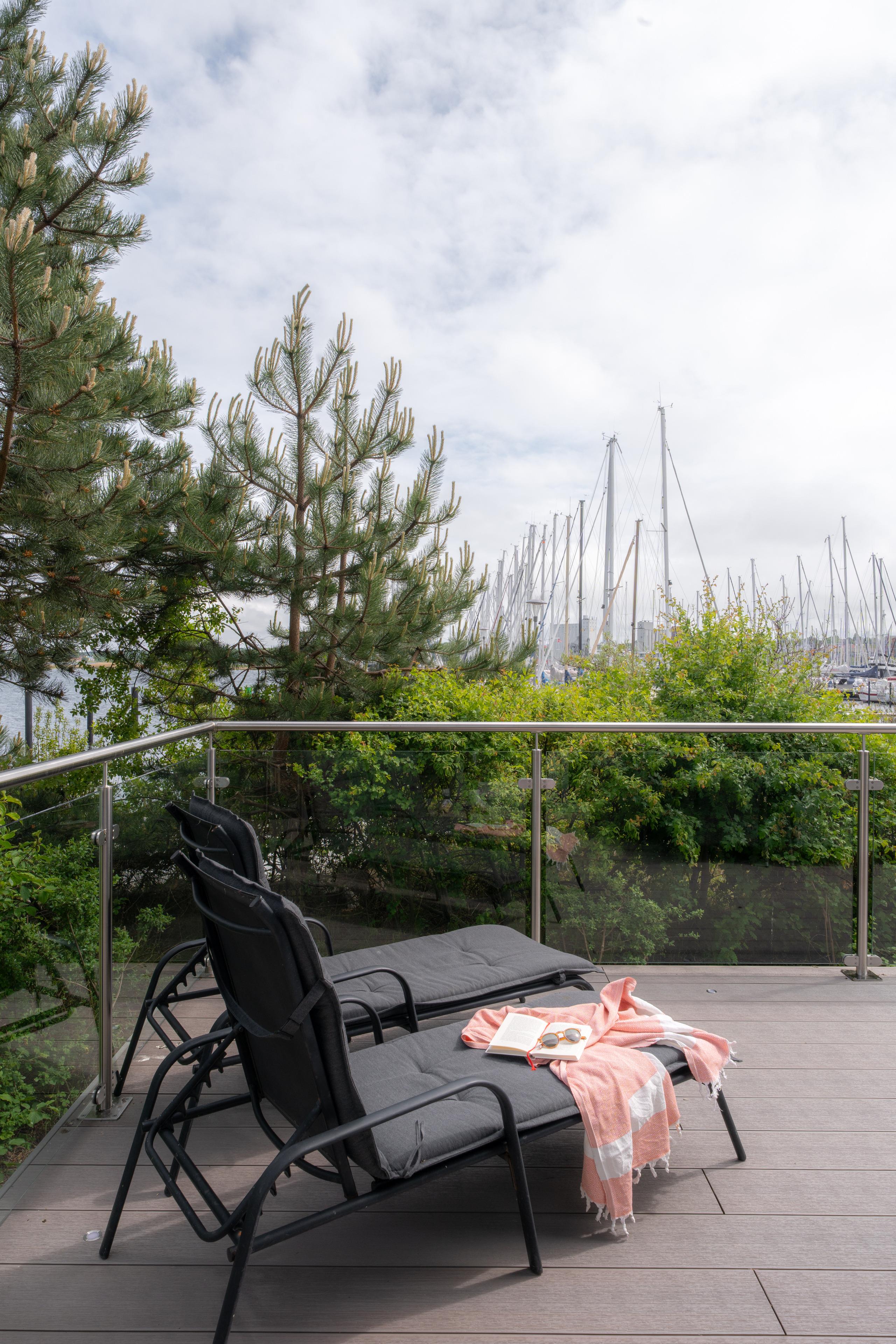 oder Sie genießen Sie einfach ihren persönlichen Panoramablick auf den schönsten Yachthafen der Ostsee