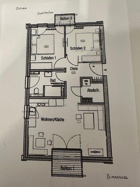 Helle Ferienwohnung mit zwei Balkonen und Yachthafenblick in Heiligenhafen, ideal für entspannte Urlaubstage.