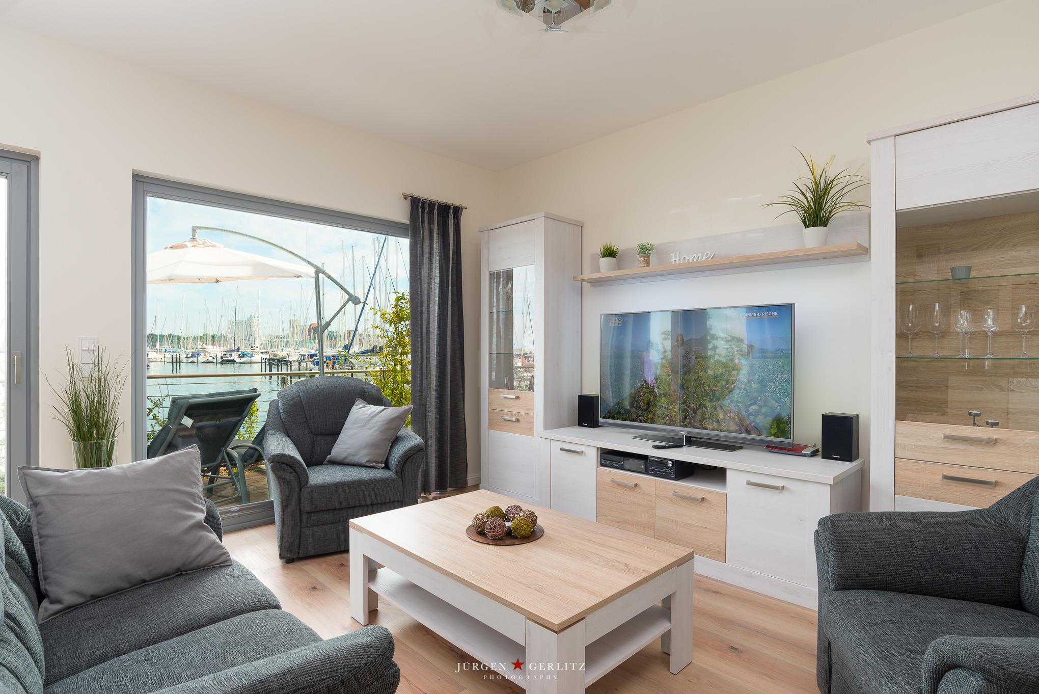 Großzügige Ferienwohnung am Yachthafen Heiligenhafen mit Sauna, Kaminofen und traumhaftem Blick.