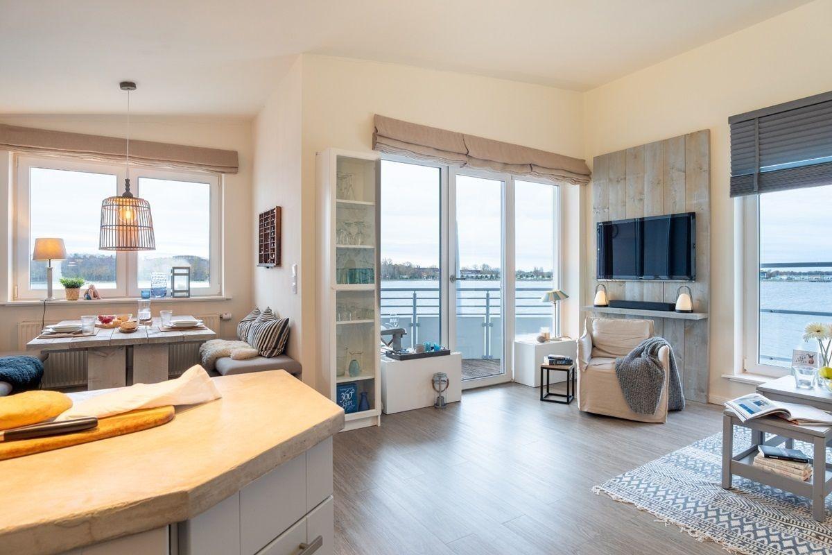 Moderne 2-Zimmer-Ferienwohnung mit Balkon und Binnenseeblick in Heiligenhafen, ideal für erholsamen Urlaub zu zweit.