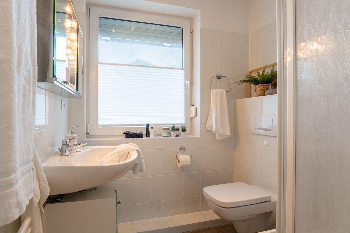 Die moderne 2 Zimmer-Wohnung befindet sich in der 2. Etage und verfügt über ein lichtdurchflutetes Wohnzimmer mit Essecke, Küchenzeile und Zugang zum Südbalkon, ein separates Schlafzimmer mit einem gemütlichen Doppelbett (ca. 180 x 200 cm) und ein Tageslichtbad.