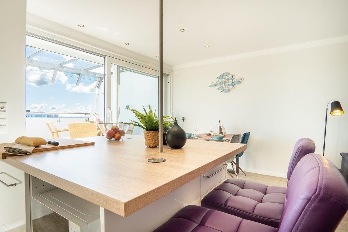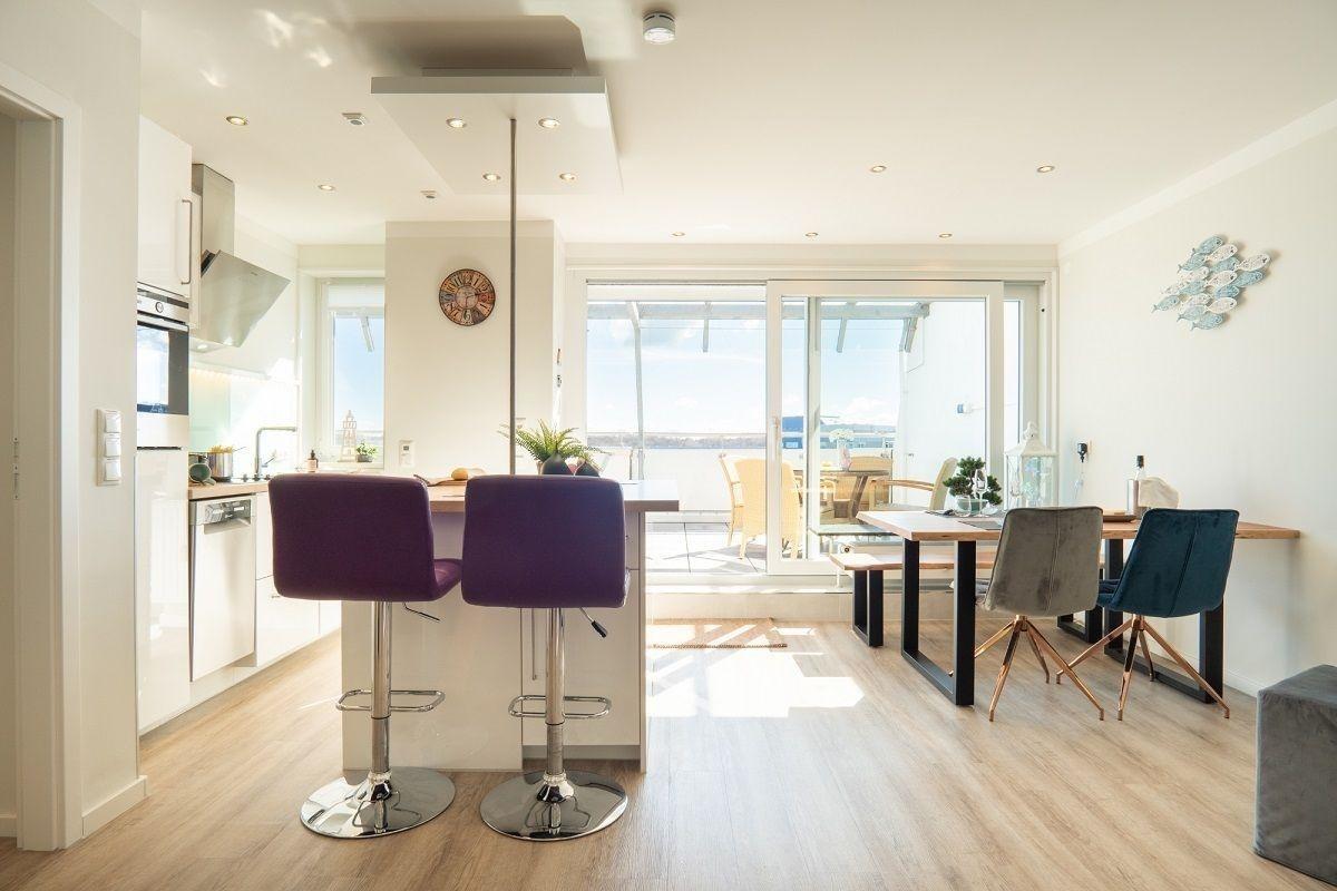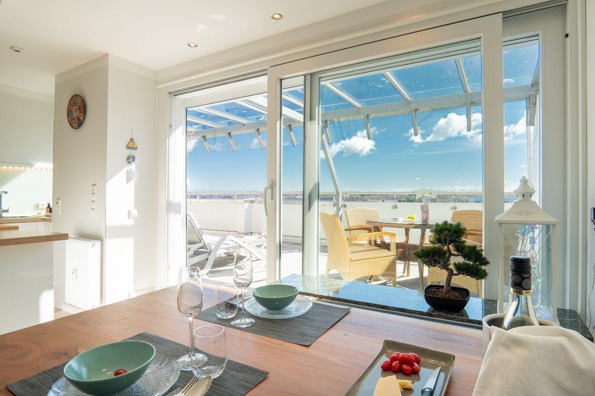 Moderne Penthouse-Ferienwohnung in Heiligenhafen mit großer Dachterrasse und traumhaftem See- und Meerblick.