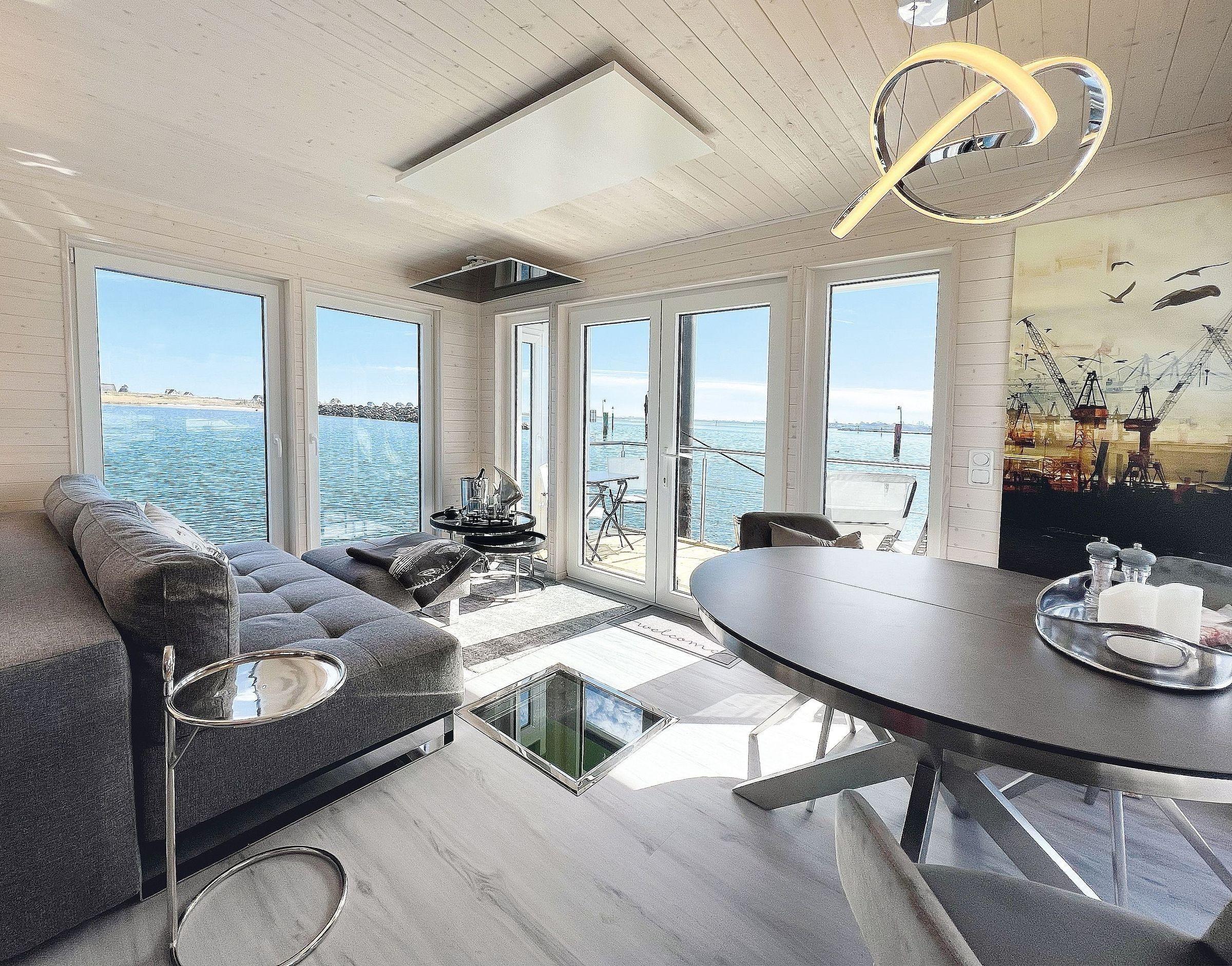 Das Hausboot der Marke 'Sundeck' liegt fest im Yachthafen Heiligenhafen an der Ostsee Spietze für Sie bereit und wird von den Gästen nicht gefahren, daher ist kein Bootsführerschein notwendig.