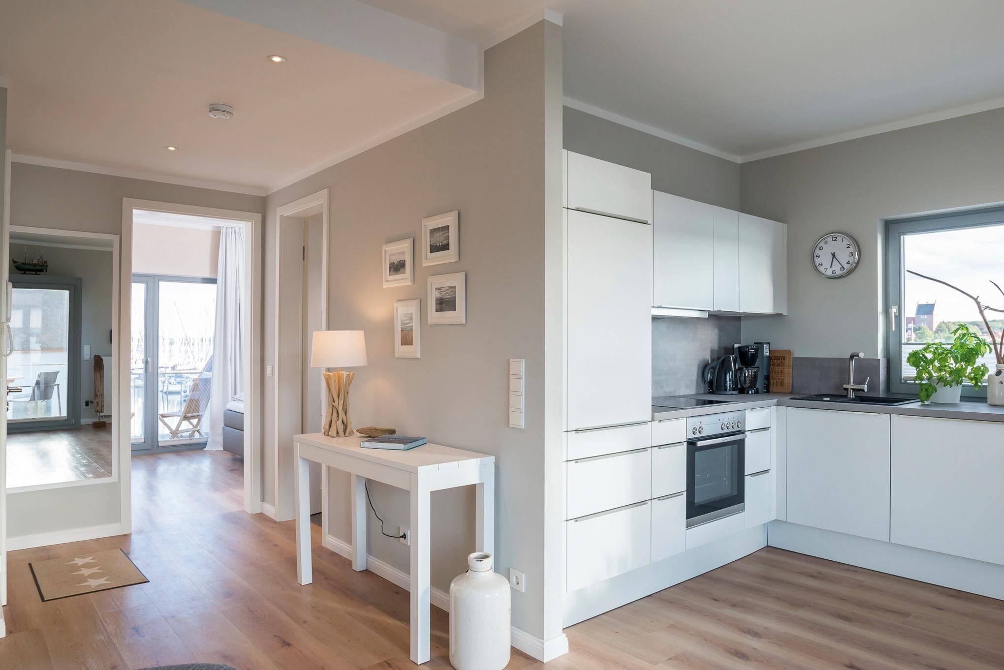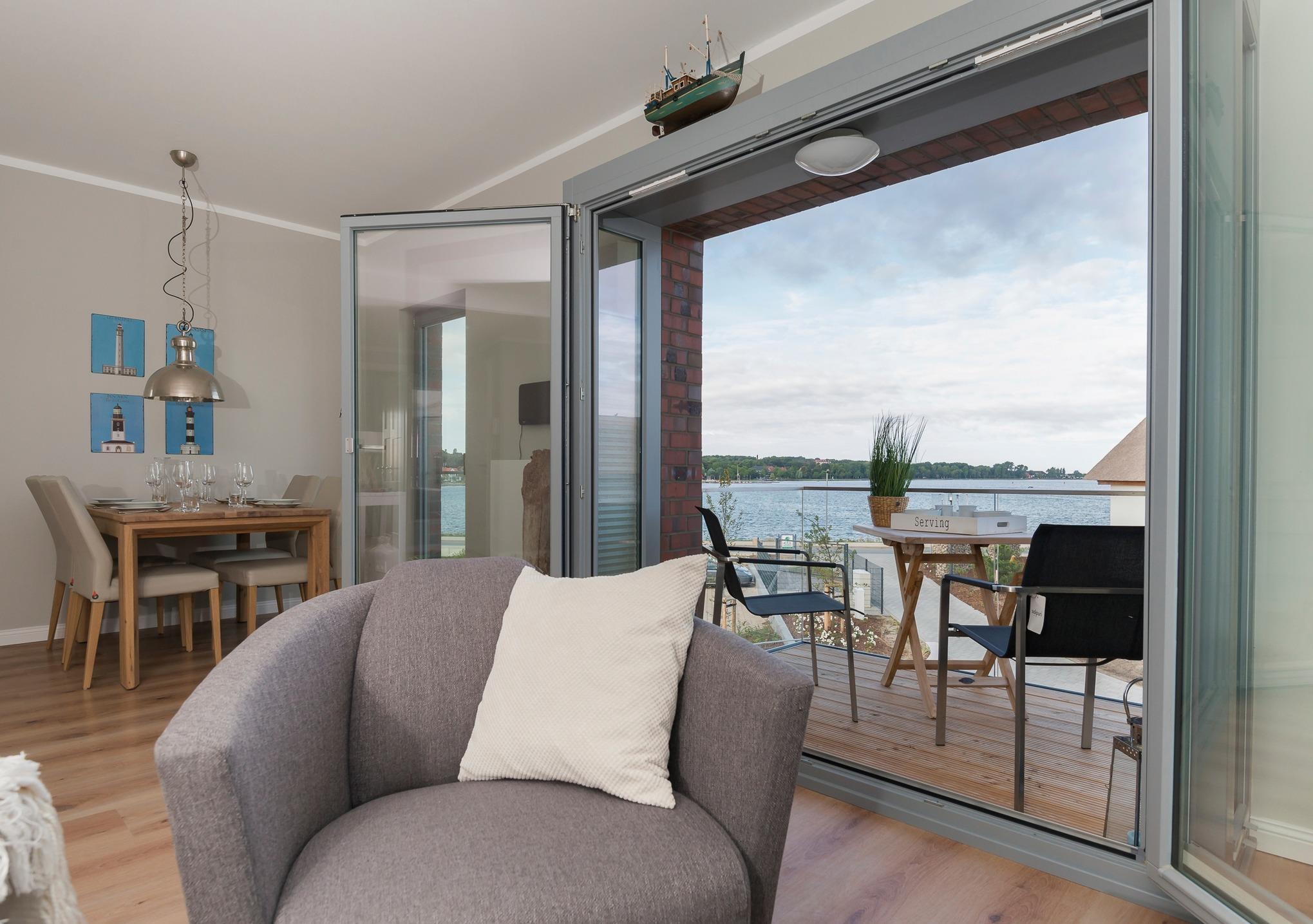 Komfortable Ferienwohnung in Heiligenhafen mit Balkon, Yachthafenblick und moderner Ausstattung für einen entspannten Urlaub.