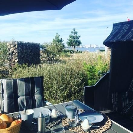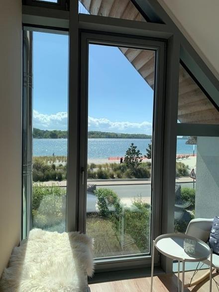 Den Binnensee vor dem Haus, die Marina dahinter und der Strand 50 m entfernt - dort liegt das 136 m² große Ferienhaus mit Platz für 6 Personen und Ihren Hund auf zwei Etagen. Ein privater Parkplatz befindet sich direkt am Haus.