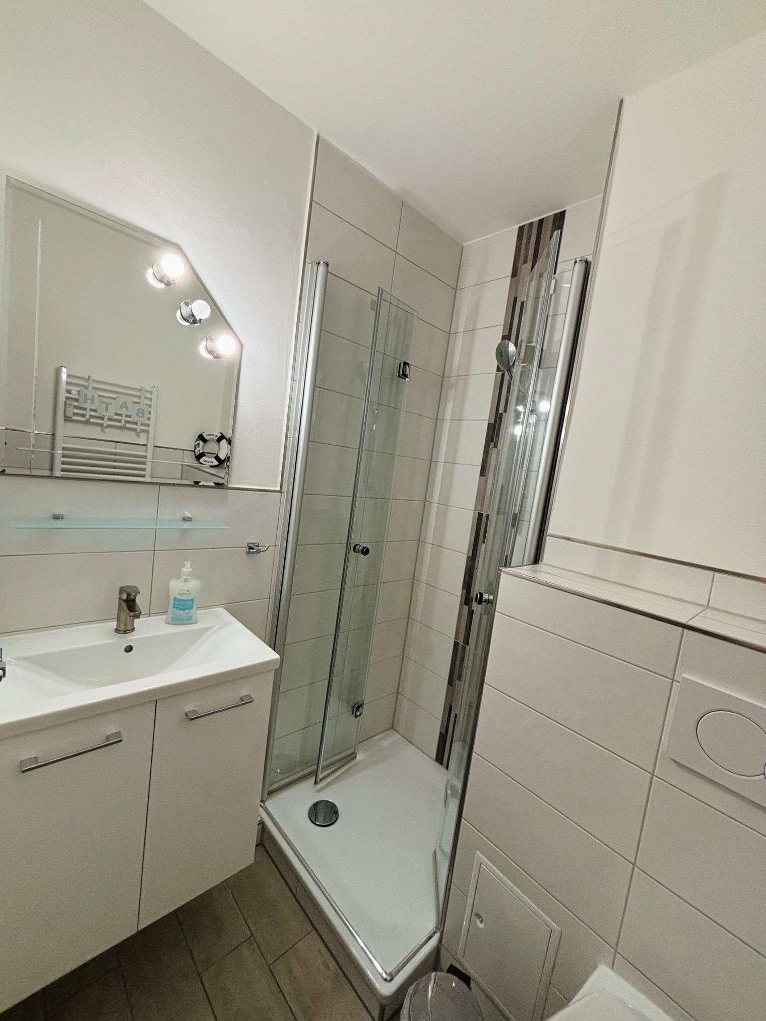 Die Wohnung umfasst einen Flur mit einem großzügigen Schrank, ein modernes Duschbad, eine offene Küche mit einer gemütlichen Essecke sowie einen Schlafbereich mit einem Doppelbett und TV. Im Wohnzimmer erwartet Sie ein 39 Zoll großer Flachbildschirm. Kostenloses WLAN steht Ihnen selbstverständlich zur Verfügung.