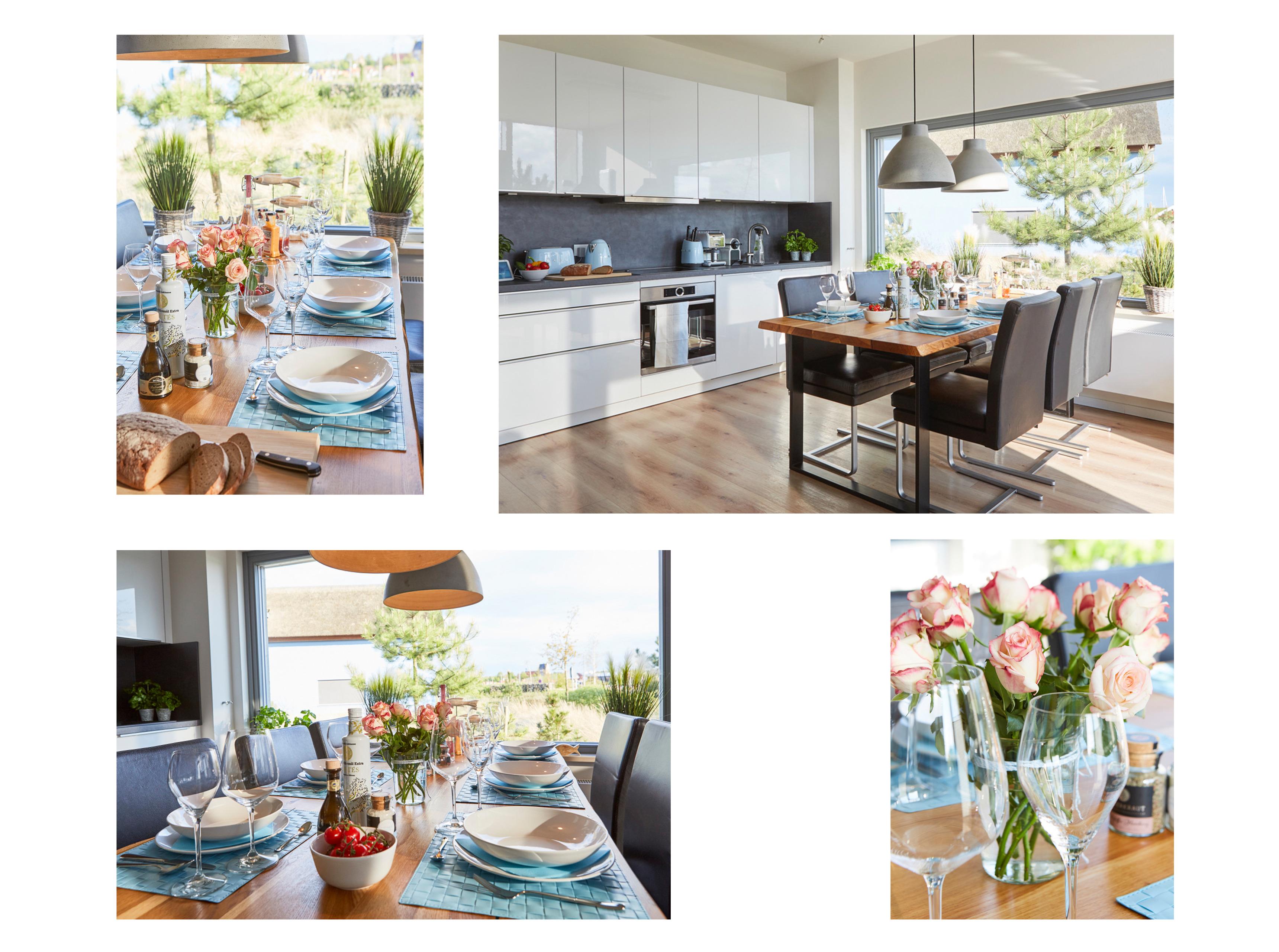 Im Erdgeschoss erwartet Sie eine voll ausgestattete Küche mit einem großzügigen Esssitzbereich für 6 Personen.