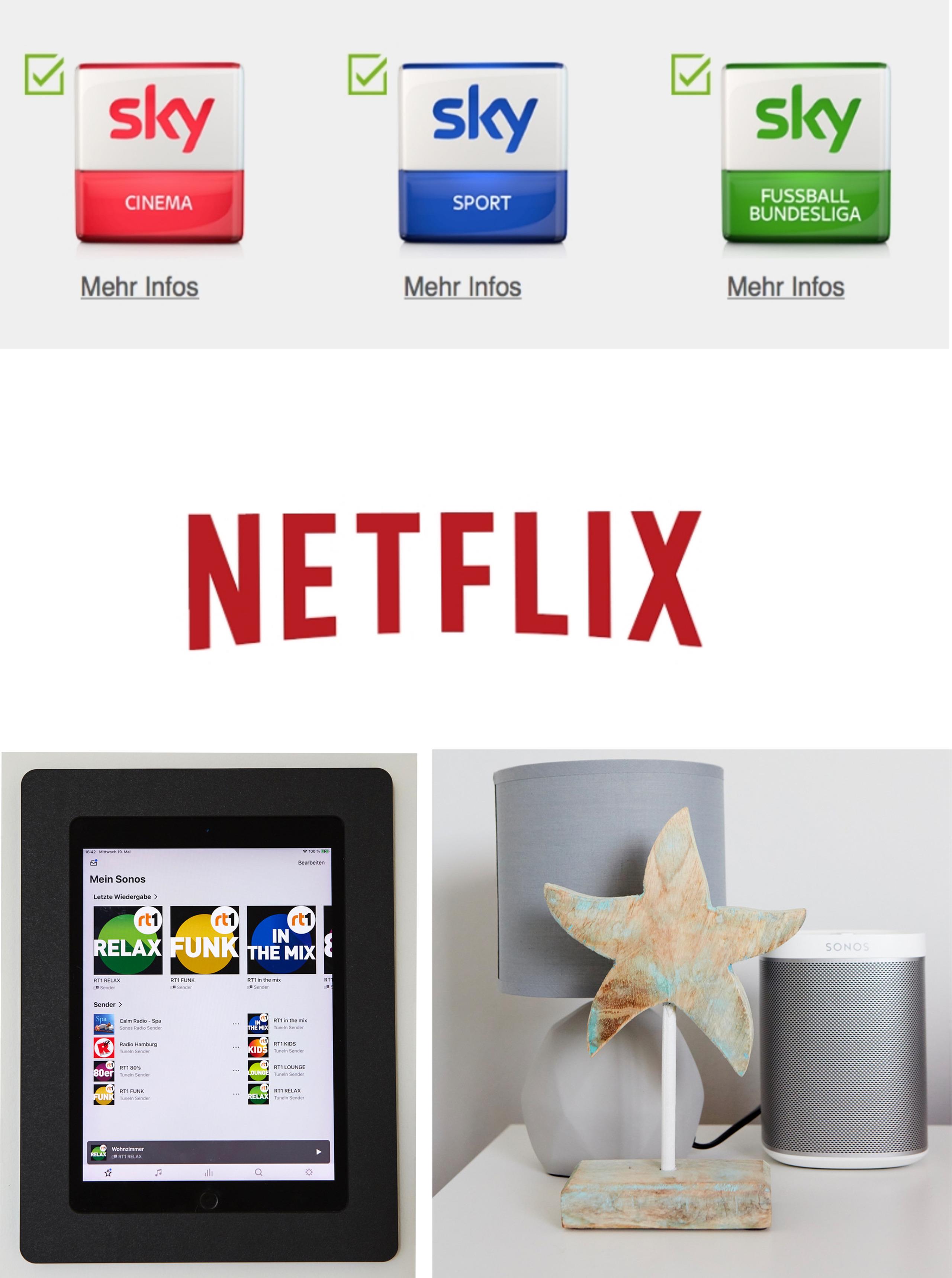 Gestalten Sie Ihren eigenen Kinoabend im Ferienhaus mit sky-TV (Cinema, Sport und Bundesliga) und Netflix. Für Musikbegeisterte kann man mit der Bose Dolby Surround Musikanlage wunderbar verschiedenster Melodien lauschen. Ein individueller Musikgenuss wird durch die Sonos Play One in ausgewählten Räumen gewährleistet.