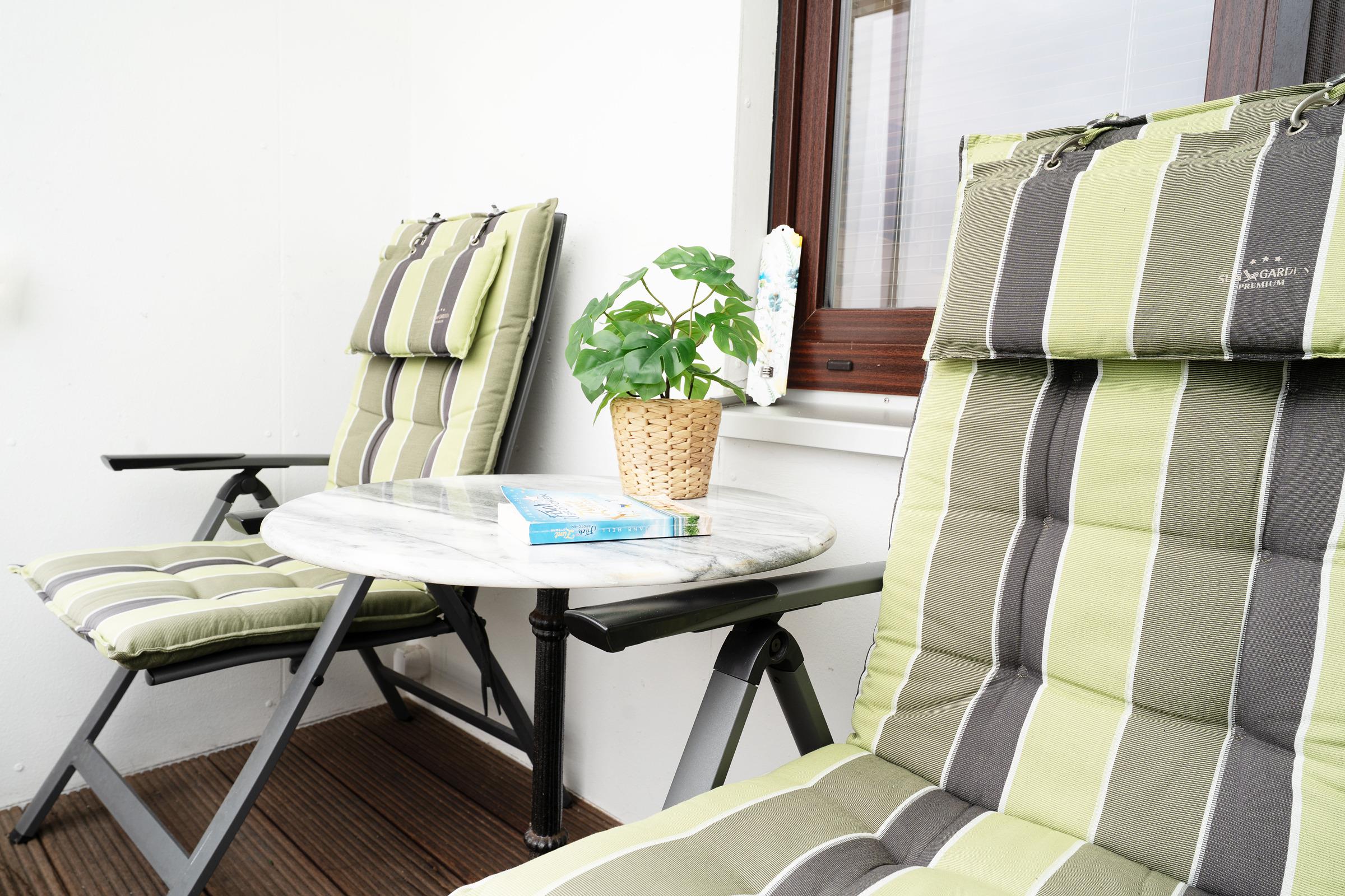 Charmante Ferienwohnung mit Balkon und Blick auf das Binnenwasser in Heiligenhafen, ideal für einen erholsamen Ostseeurlaub.