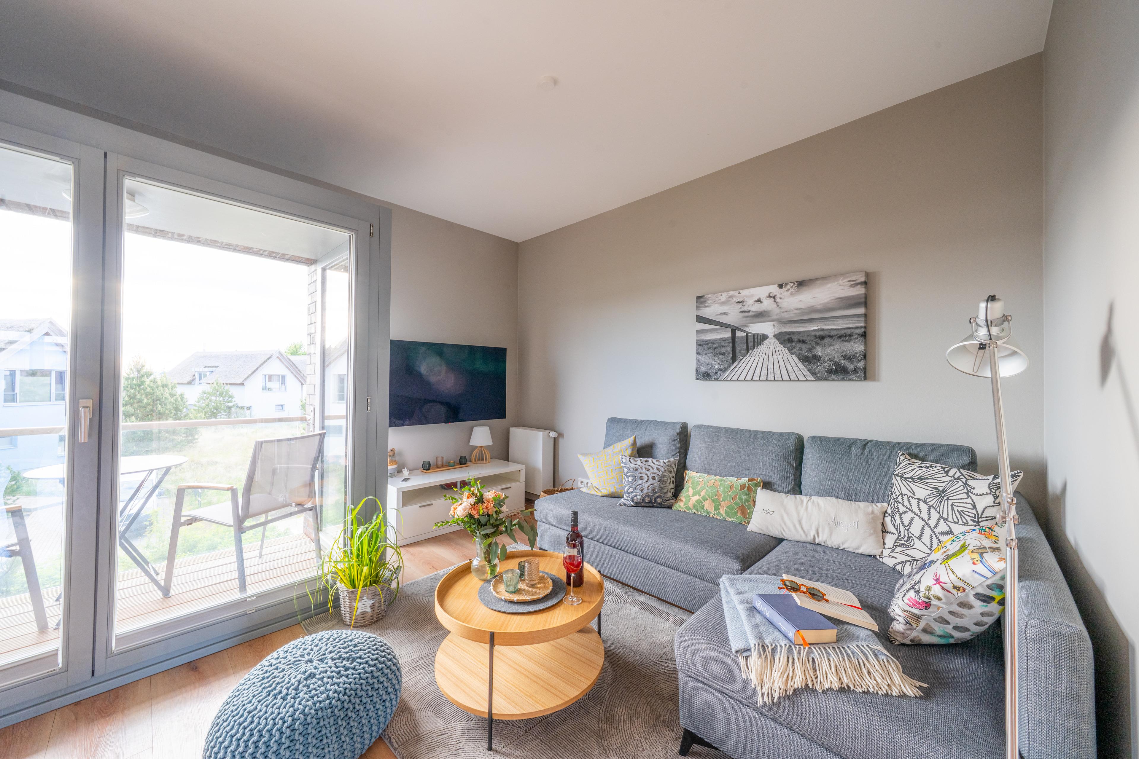 Moderne Ferienwohnung in Heiligenhafen mit Yachthafenblick und eigenem Tiefgaragenstellplatz.