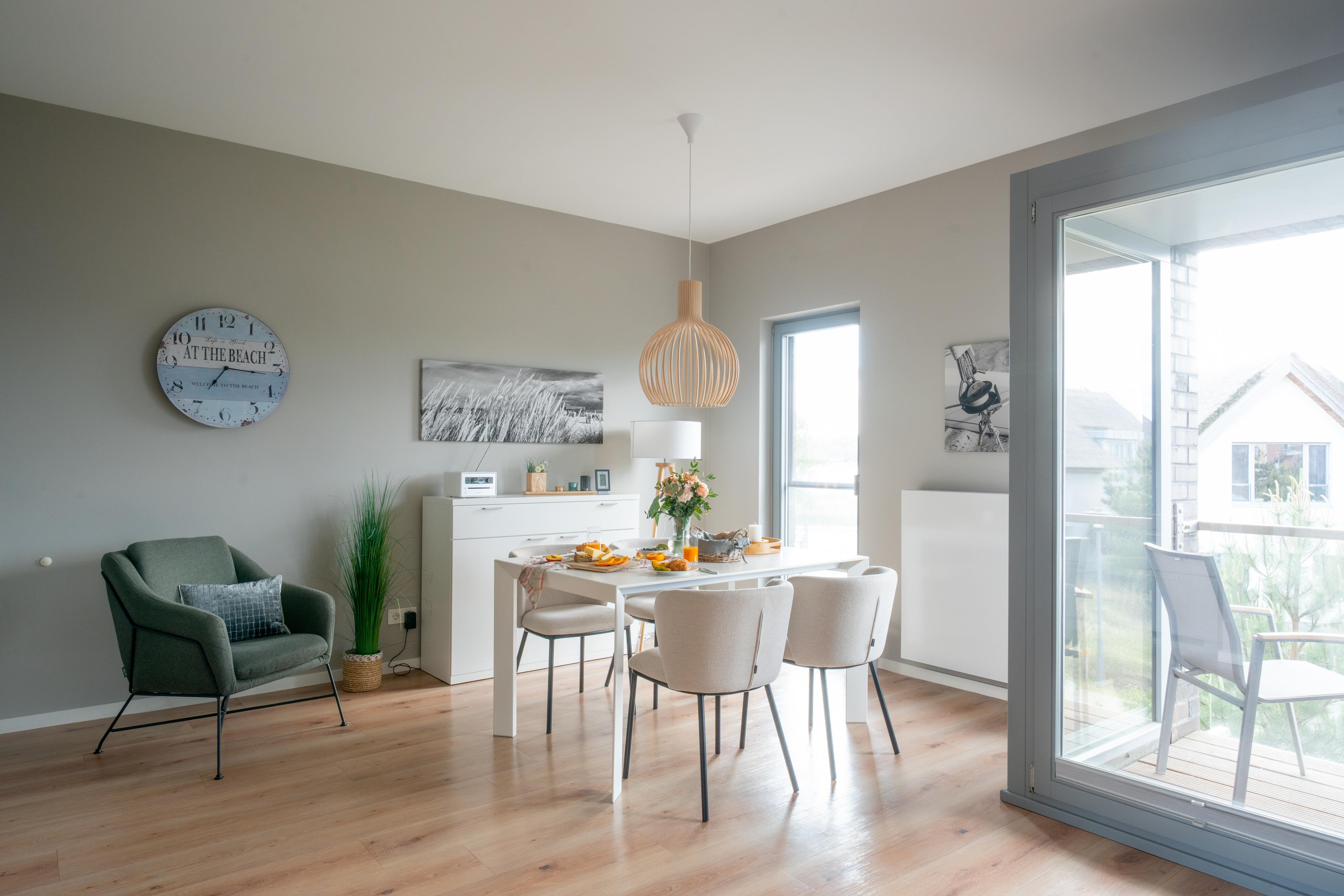 Der offene und helle Wohnbereich bietet neben einem freundlichen Essplatz mit Blick zum Binnensee auch eine gemütliche Lounge-Ecke mit bequemer Couch (auch Schlafplatz für die 3. Person, Liegefläche ca. 1,40 x 2m) und Sessel. Sollte mal nicht gerade Strandwetter sein lädt dieser Bereich zum gemütlichen Chillen ein. Für die gewünschte Unterhaltung sorgt ein neuer 55 "- Fernseher mit Apple-TV und weiterem HDMI-Anschluss. Ihre Wunschmusik hören Sie über das Digitalradio mit Bluetooth-Empfang und CD-Player. Auf der windgeschützten West-Loggia genießt man einen herrlichen Blick auf den Binnensee mit seiner neu gestalteten Promenade und abends den Sonnenuntergang.