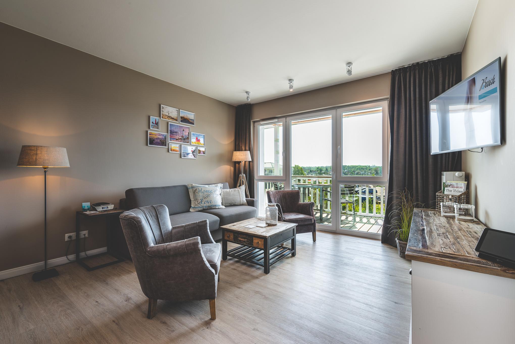 Genießen Sie im Deluxe One Bedroom mit Sauna in Heiligenhafen eine komfortable Ferienwohnung mit direktem Strandzugang und moderner Ausstattung.