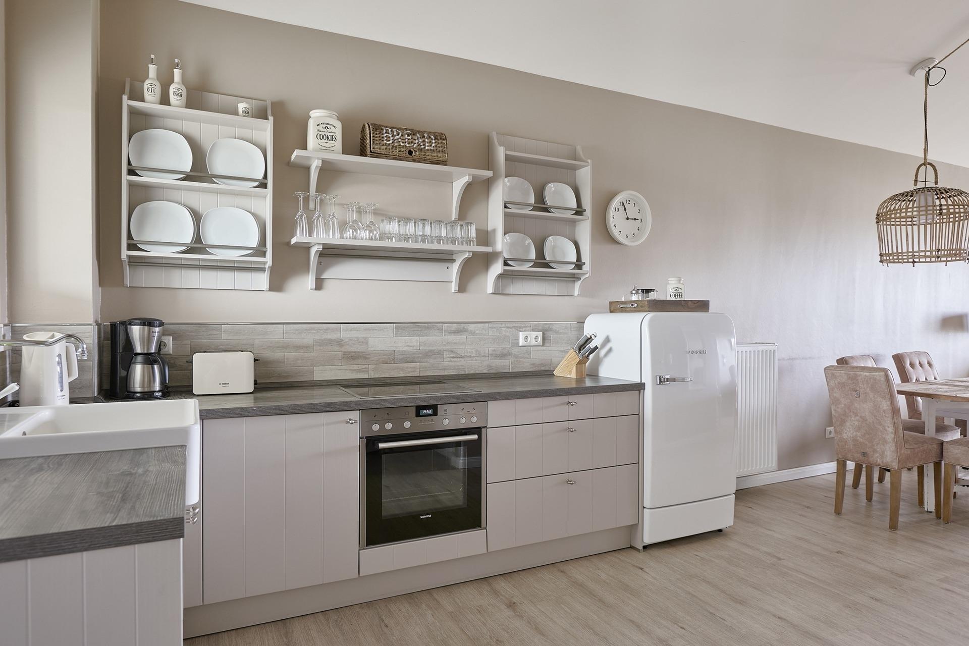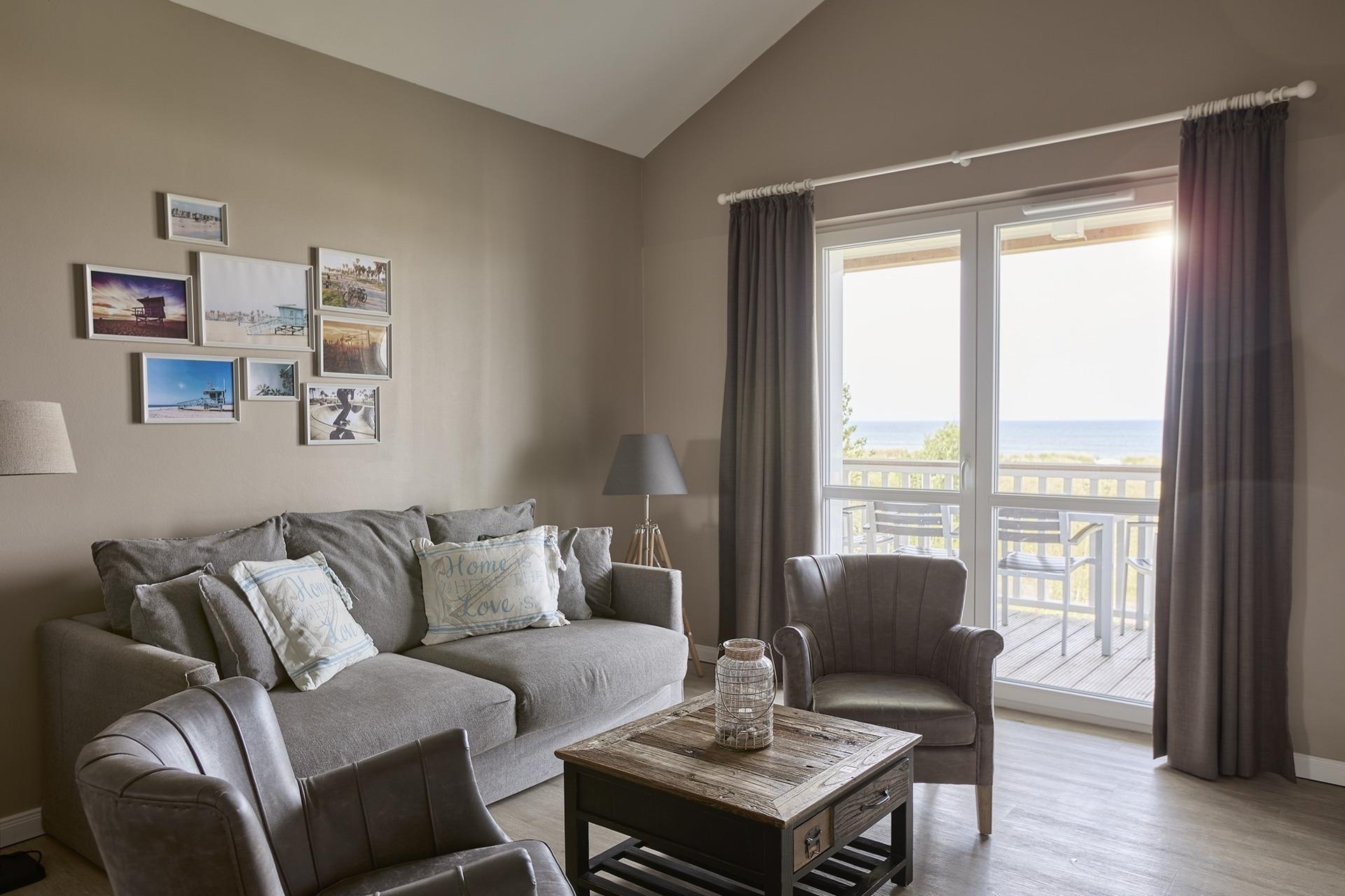 Neben der Badewanne und der direkten Nähe zur Ostsee, wird eine Wohnküche mit Esstisch geboten. Perfekt zum gemeinsamen dinieren oder das gemütliche Kartenspielen am Abend. Es darf etwas entspannter zugehen? Dann ab auf die Couch und den Tag ausklingen lassen.