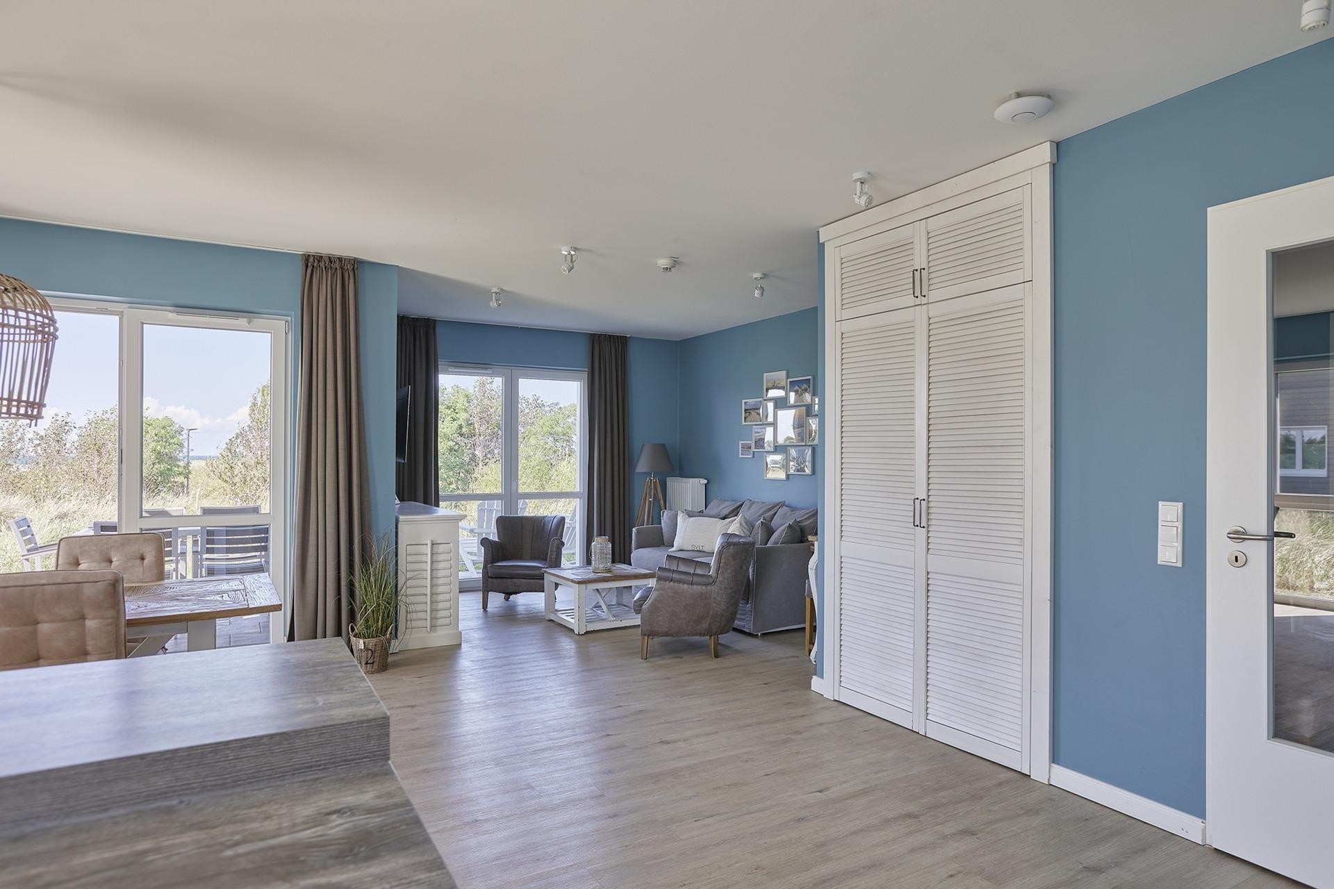Apropos Blick: egal ob morgens oder abends – das Apartment verfügt über zwei Terrassen welche sich sowohl auf der Nordseite als auch auf der Südseite befinden. Ob Sonnenaufgang oder -untergang, ob Dünenlandschaft oder Meer – hier habt ihr einfach alles.