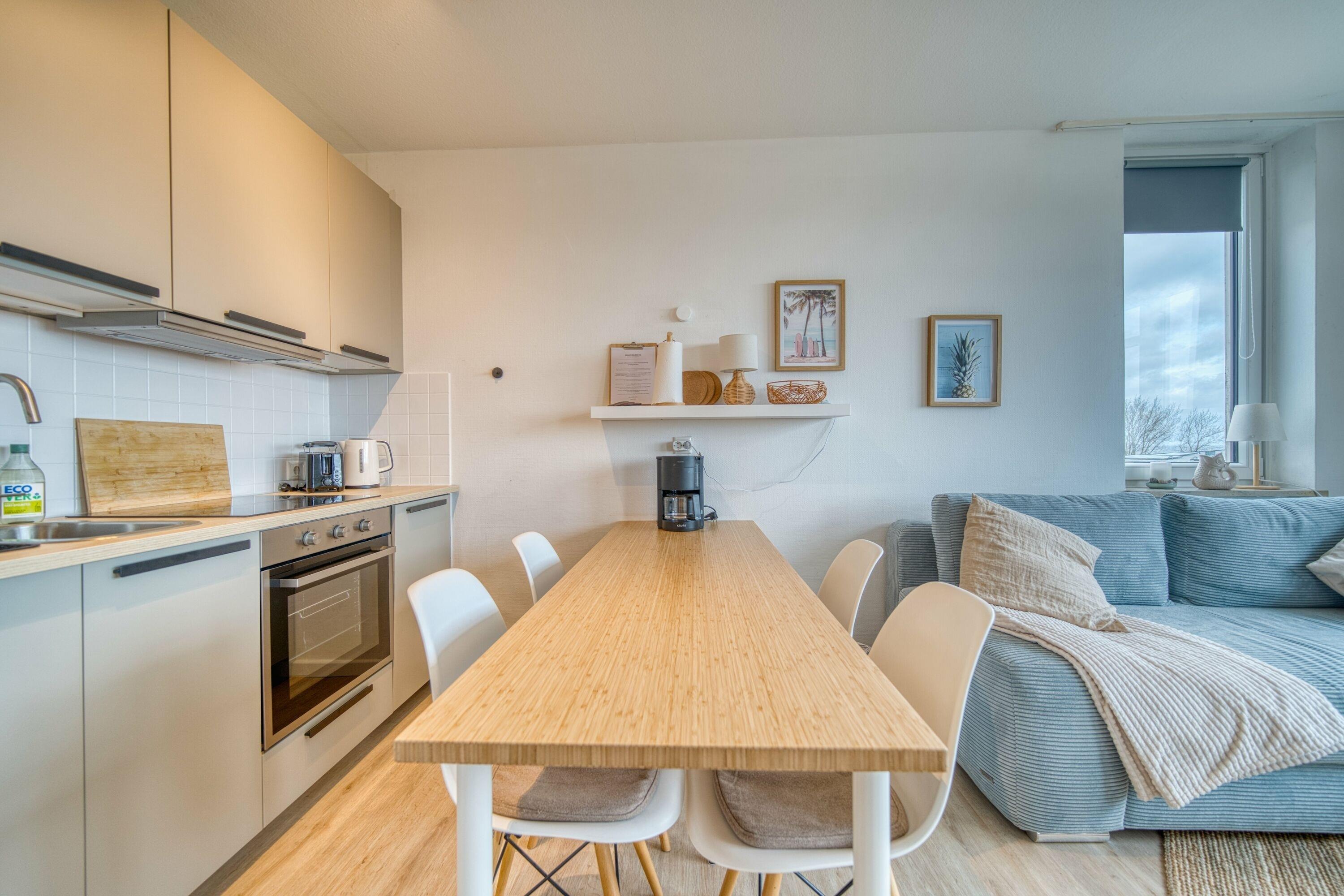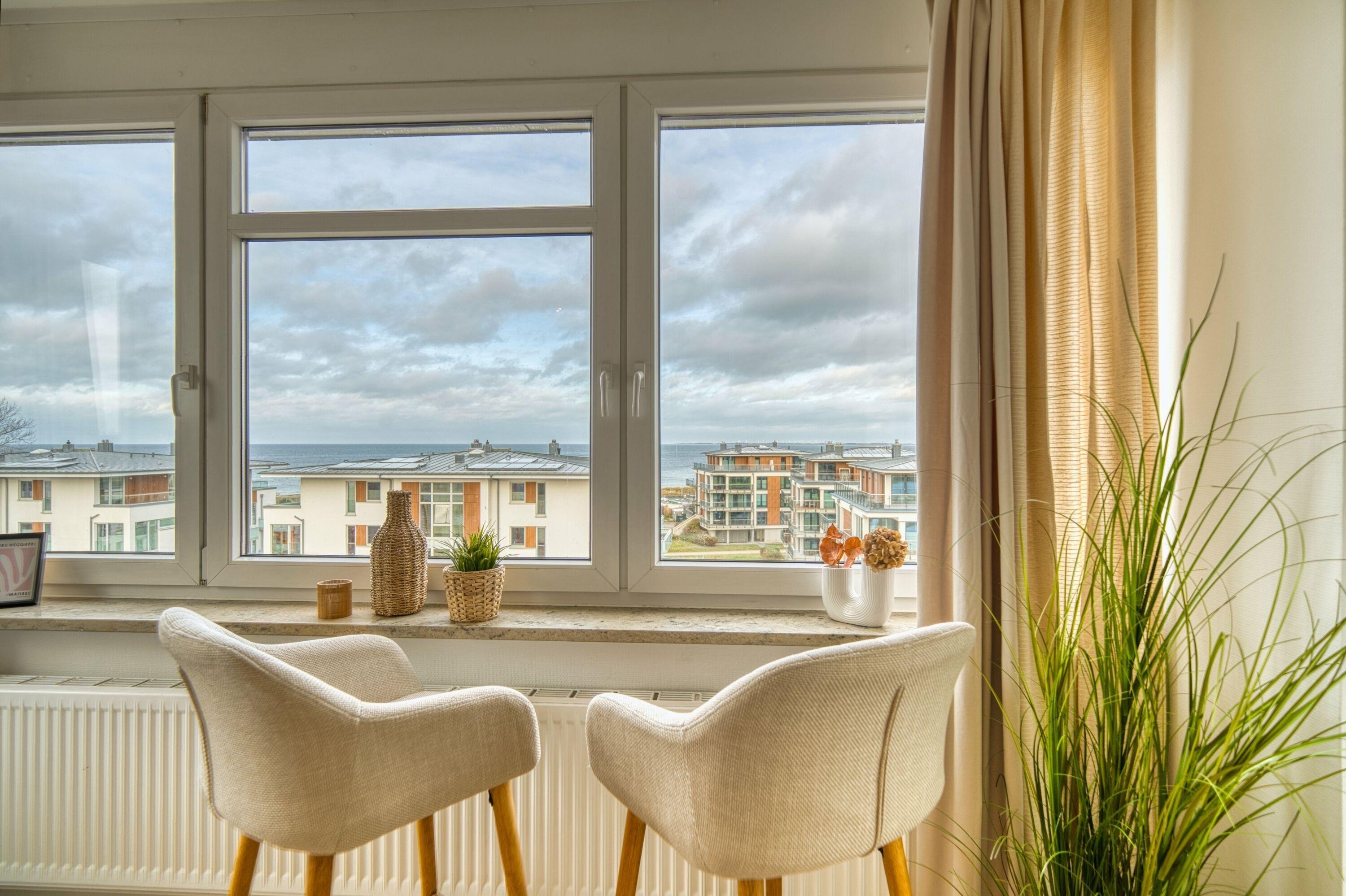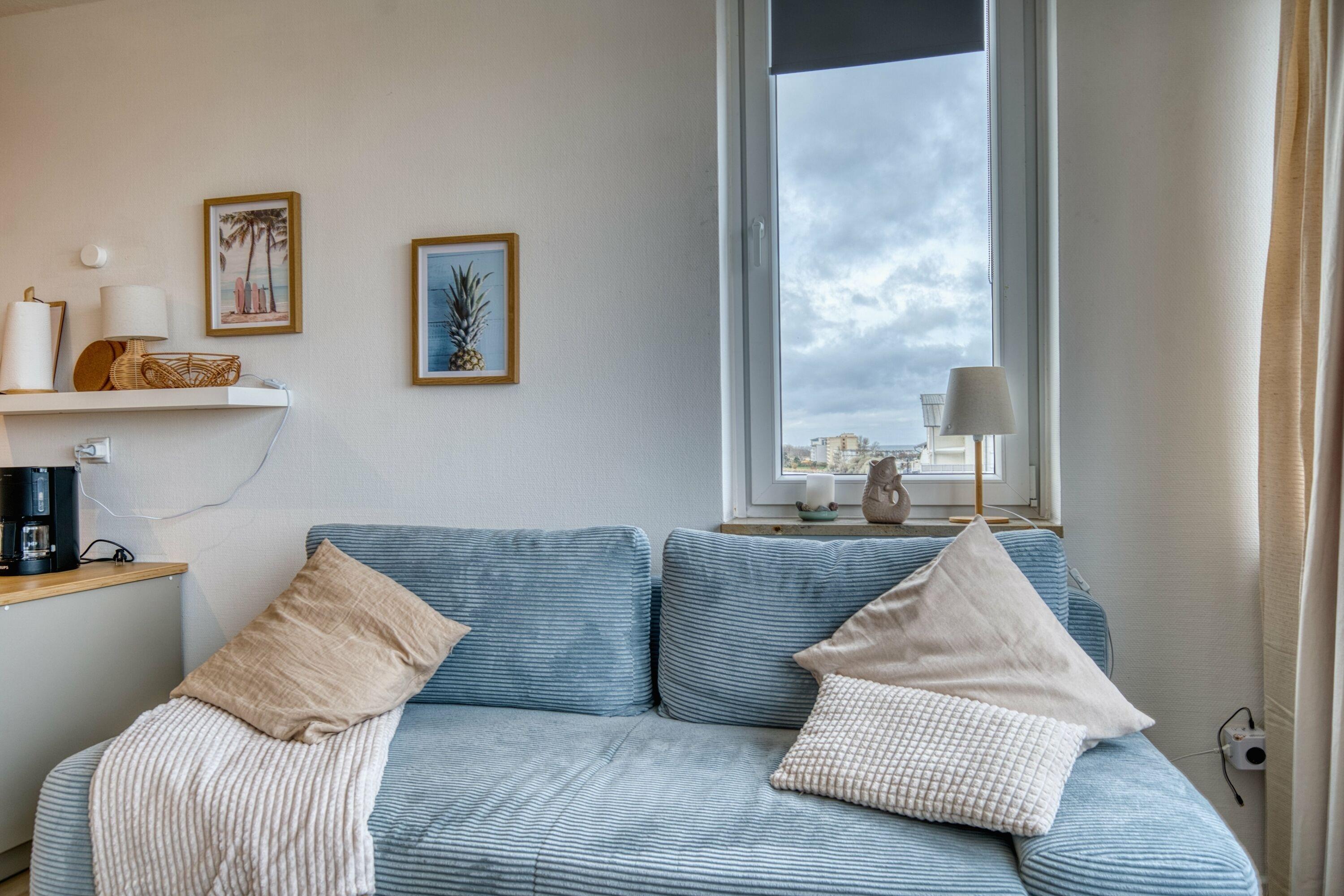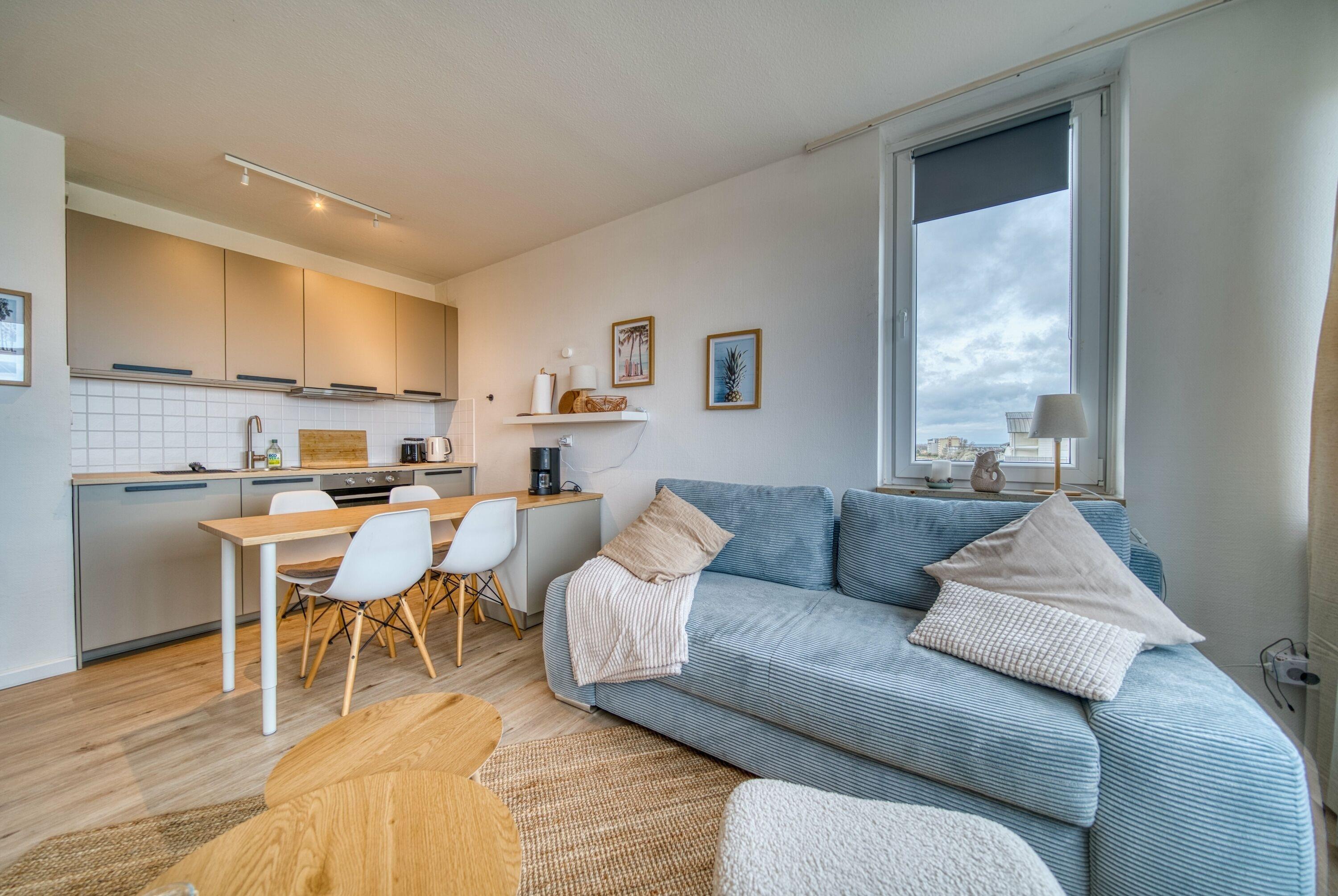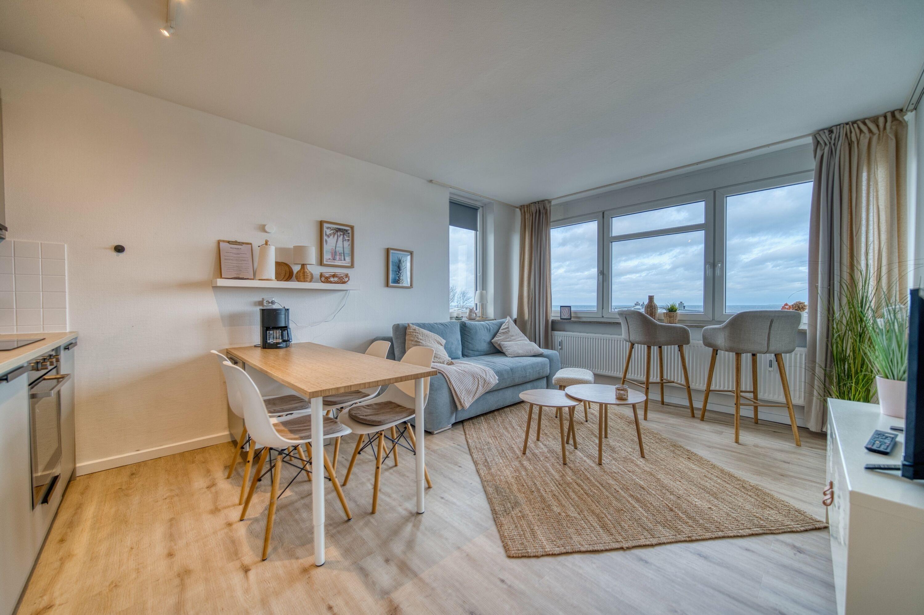 Gemütliche Ferienwohnung in der 5. Etage mit direktem Meerblick, ideal für bis zu 4 Personen.