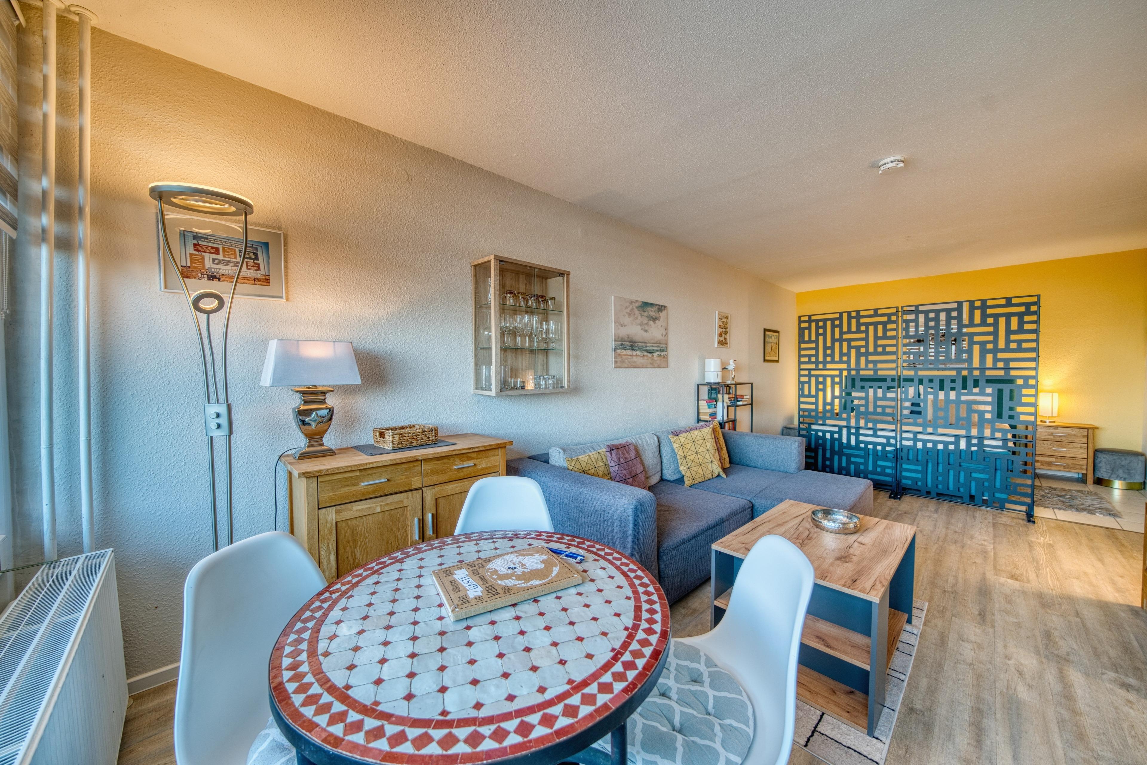 Ein saisonaler Strandkorb (ca. Juni–Mitte September), Strandbuggy und Luftreiniger sind inklusive. Haustiere sind nicht gestattet. Parkplatz hinter dem Gebäude, Fahrstuhl zu jeder Etage, gemeinschaftliche Fahrradräume und Strandentfernung ca. 300 m. Nichtraucherwohnung.