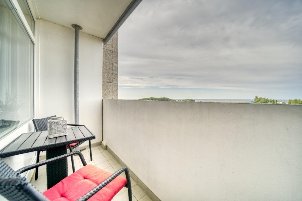 Erleben Sie einen erholsamen Urlaub in dieser 45 qm großen Ferienwohnung im Haus A in der 4. Etage, die Platz für bis zu 4 Personen bietet. Der Balkon mit Blick zur Ostsee lädt zum Entspannen an der frischen Meeresluft ein.