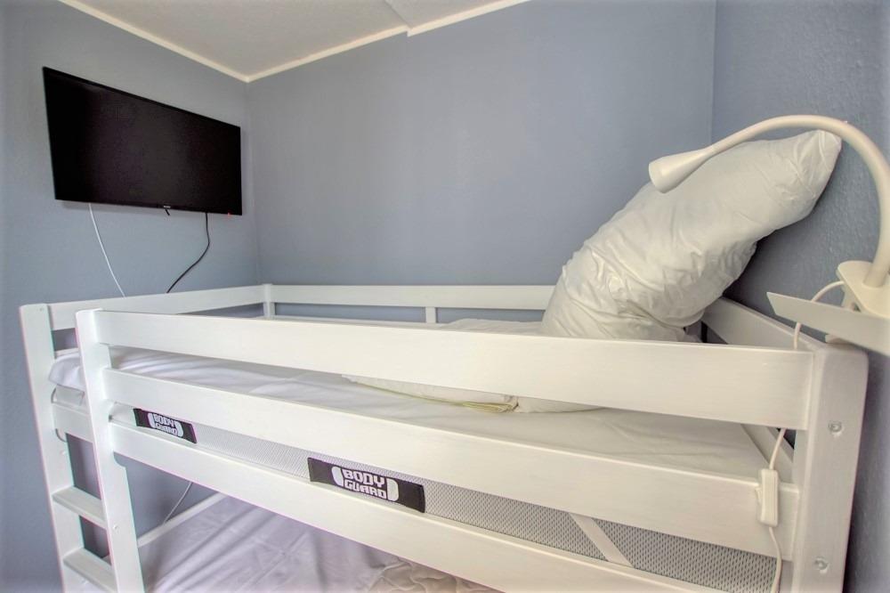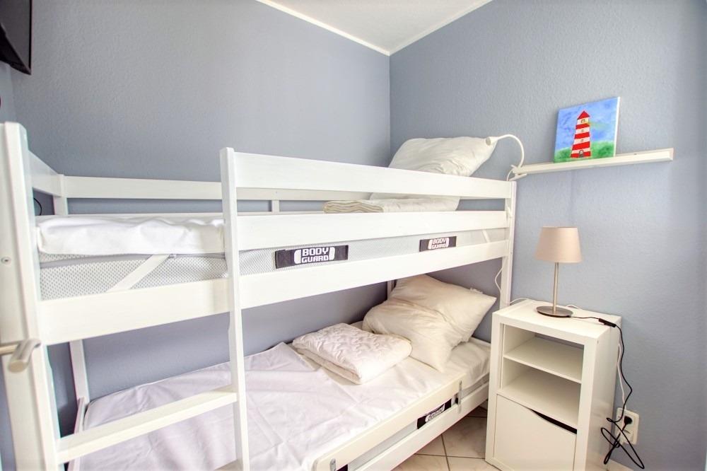 Die Unterkunft verfügt über ein Wohn-/Esszimmer mit Flachbild-TV, einen Elternschlafbereich mit Doppelbett, ein Kinderzimmer mit Hochbett und TV sowie eine neue Einbauküche mit Geschirrspüler, Backofen, Ceranfeld, Kühlschrank mit Gefrierfach, Mikrowelle und Kaffeemaschine. Das Bad ist modern ausgestattet und WLAN ist inklusive.