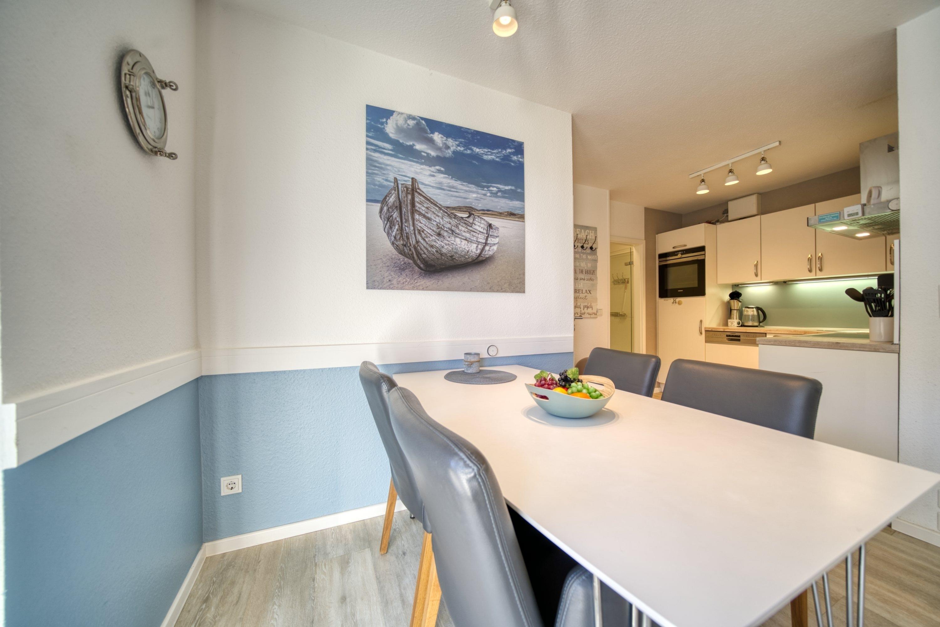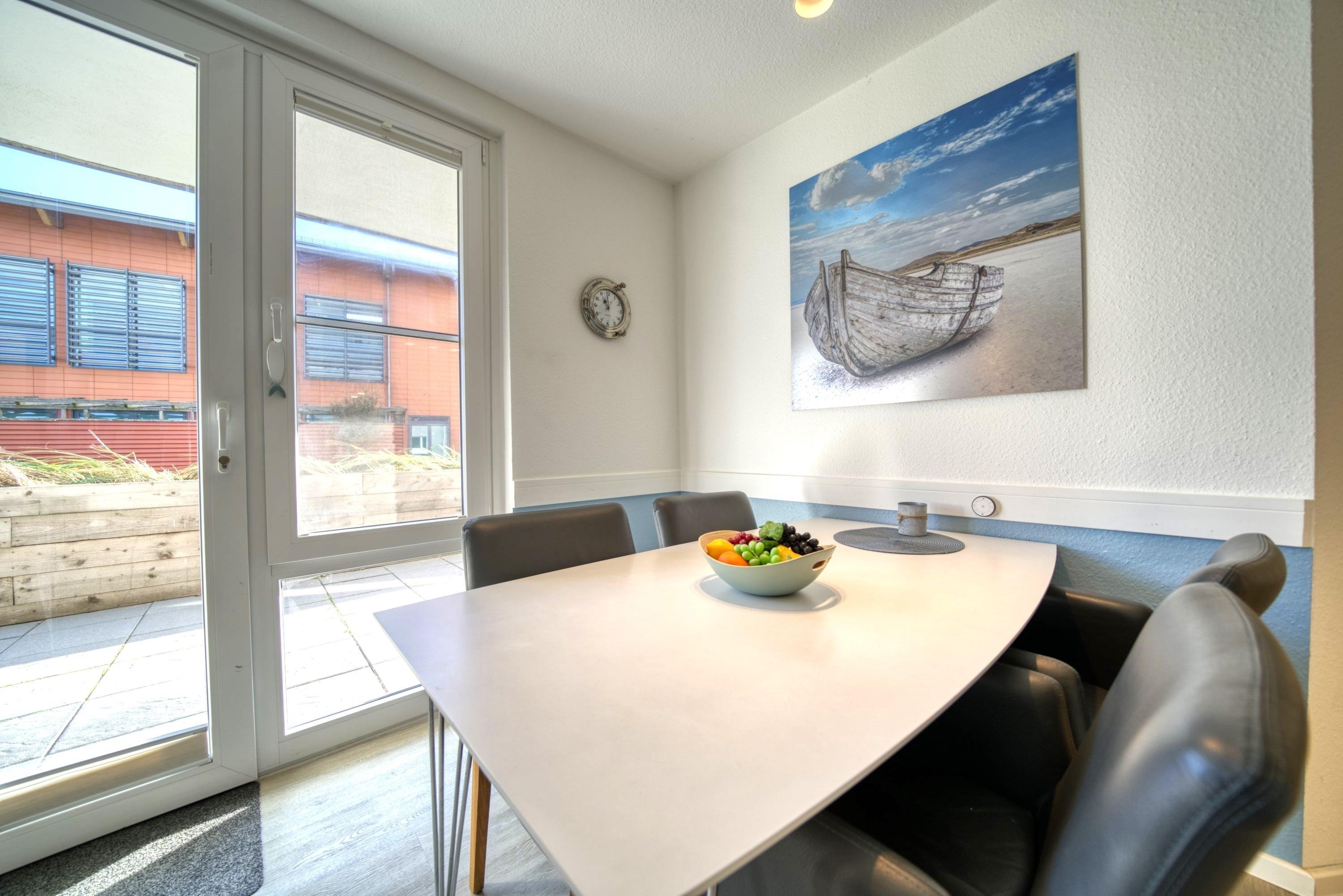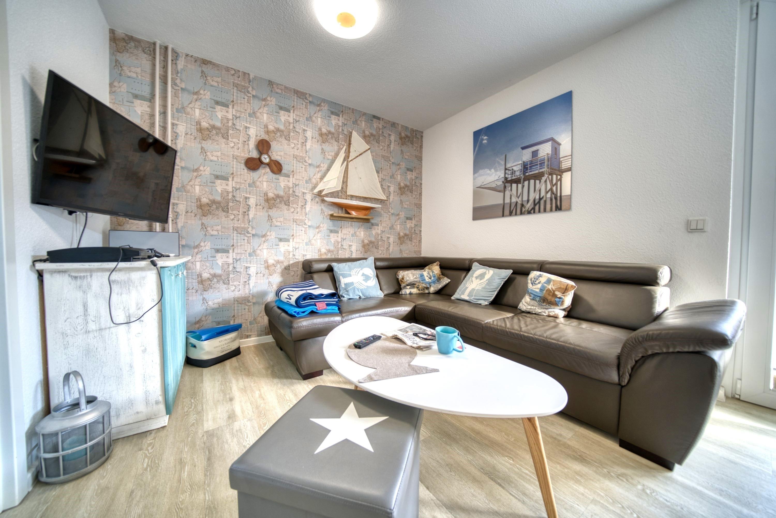Freuen Sie sich auf maritimes Urlaubsfeeling in dieser 56 m² großen Erdgeschosswohnung im Haus A. Die Unterkunft bietet Platz für bis zu 3 Personen – ideal für Paare oder kleine Familien. Die großzügige Terrasse lädt zum Sonnen und Entspannen ein.