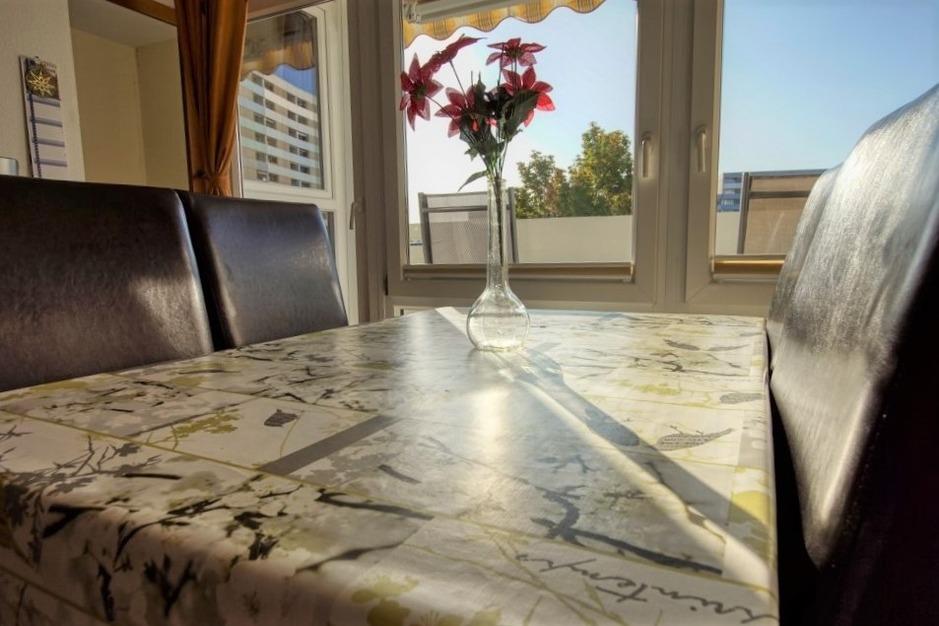 Gemütliche Ferienwohnung mit Balkon und Blick auf den Binnensee in Heiligenhafen, nahe Strand und Einkaufsmöglichkeiten.