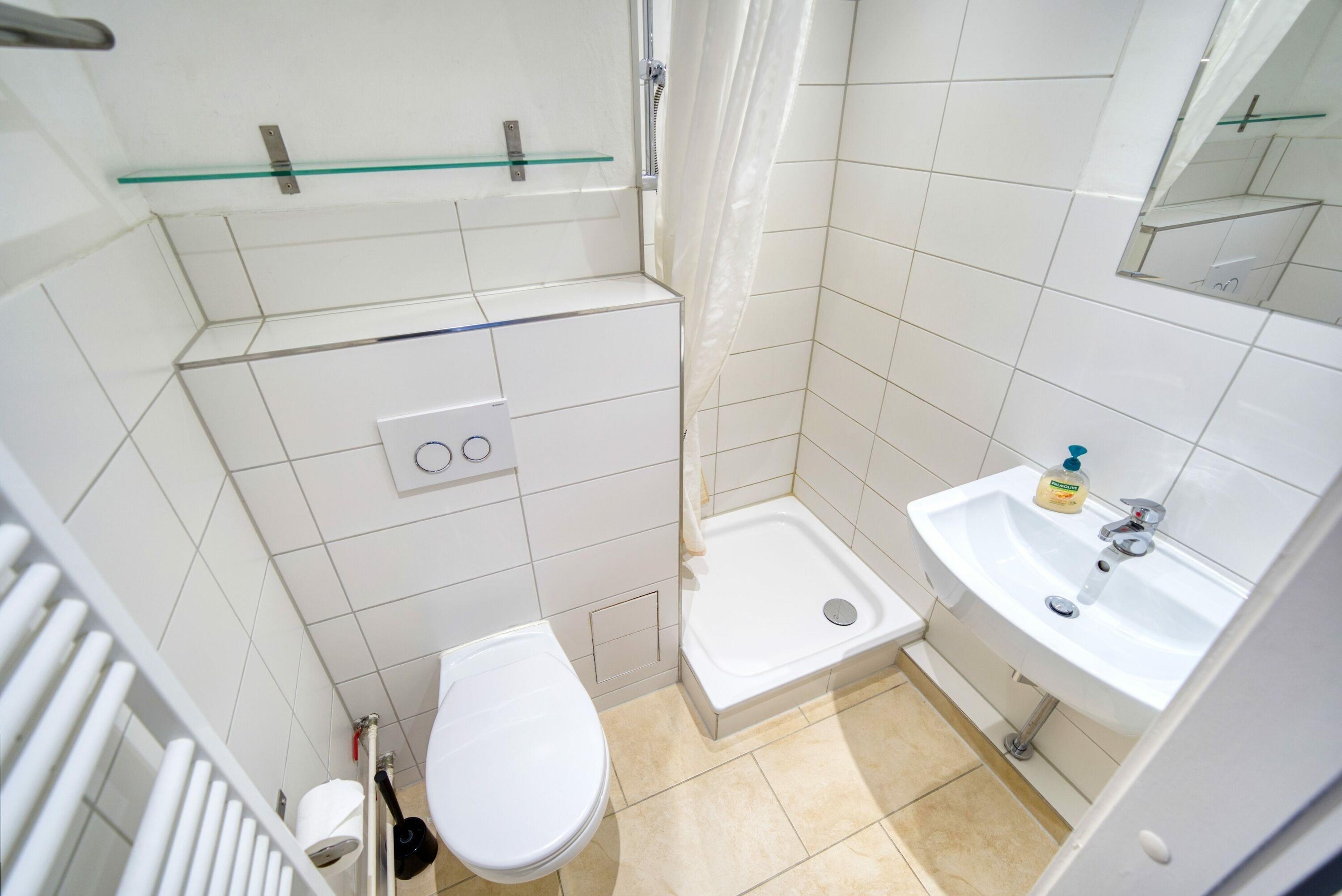 Badezimmer mit Dusche, WC [&] Waschbecken