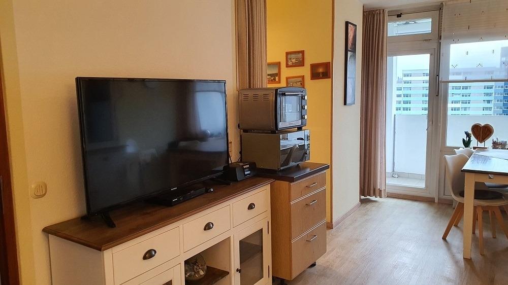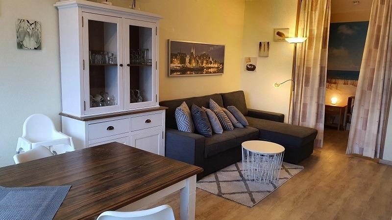 Südbalkon mit Binnenseeblick, abgetrennter Schlafbereich mit zwei Einzelbetten, separates Kinderzimmer mit Etagenbett, WLAN. Küche mit Cerankochfeld, Geschirrspüler, Kaffeemaschine und weiteren Utensilien. Bad mit Duschkabine und Handtuchtrockner. Ca. 300?m zum Strand, kostenloser Parkplatz, Fahrstuhl, abschließbare Fahrradräume, ca. 30?m zum Aktiv-Hus und Ladenzeile. Nichtraucherwohnung, keine Haustiere. Bonus: Freikarte für die Kinderspielwelt.
