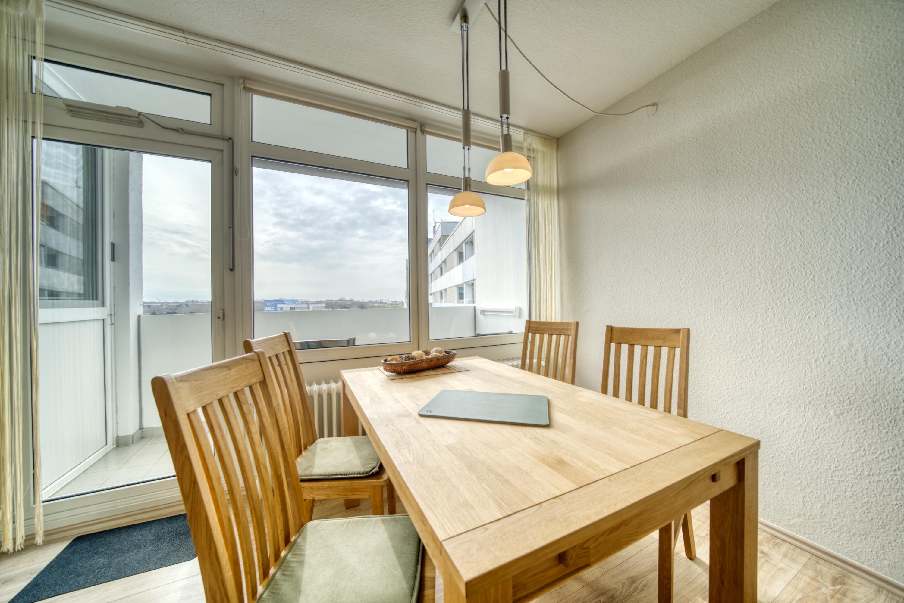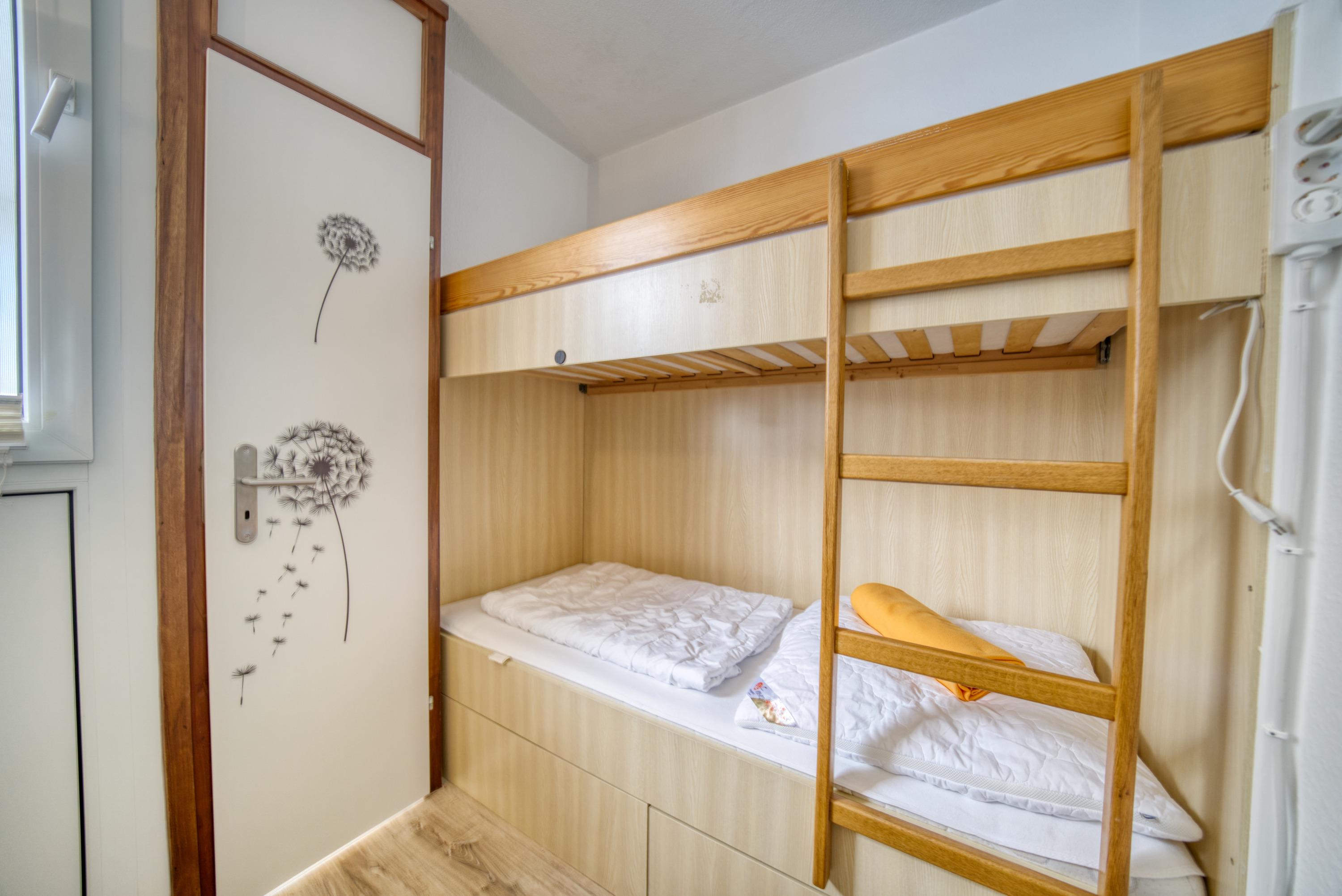 45?m² für bis zu 4 Personen, Südbalkon mit Binnenseeblick, Laminatboden, Smart-TV, WLAN inklusive. Wohnbereich mit Doppelbett (Vorhang für Privatsphäre), separates Kinderzimmer mit Etagenbett. Offene, ausgestattete Küche mit Cerankochfeld, Kühlschrank, Mikrowelle, Kaffeemaschine. Badezimmer mit Duschkabine, Handtuchtrockner, WC. Nichtraucherwohnung, keine Haustiere. Ca. 300?m zum Strand, Fahrstuhl, Fahrradräume und kostenloser Parkplatz vorhanden. Perfekt für Familien oder Paare, die Komfort, Binnenseeblick und kurze Wege zum Strand und Aktiv-Hus schätzen.