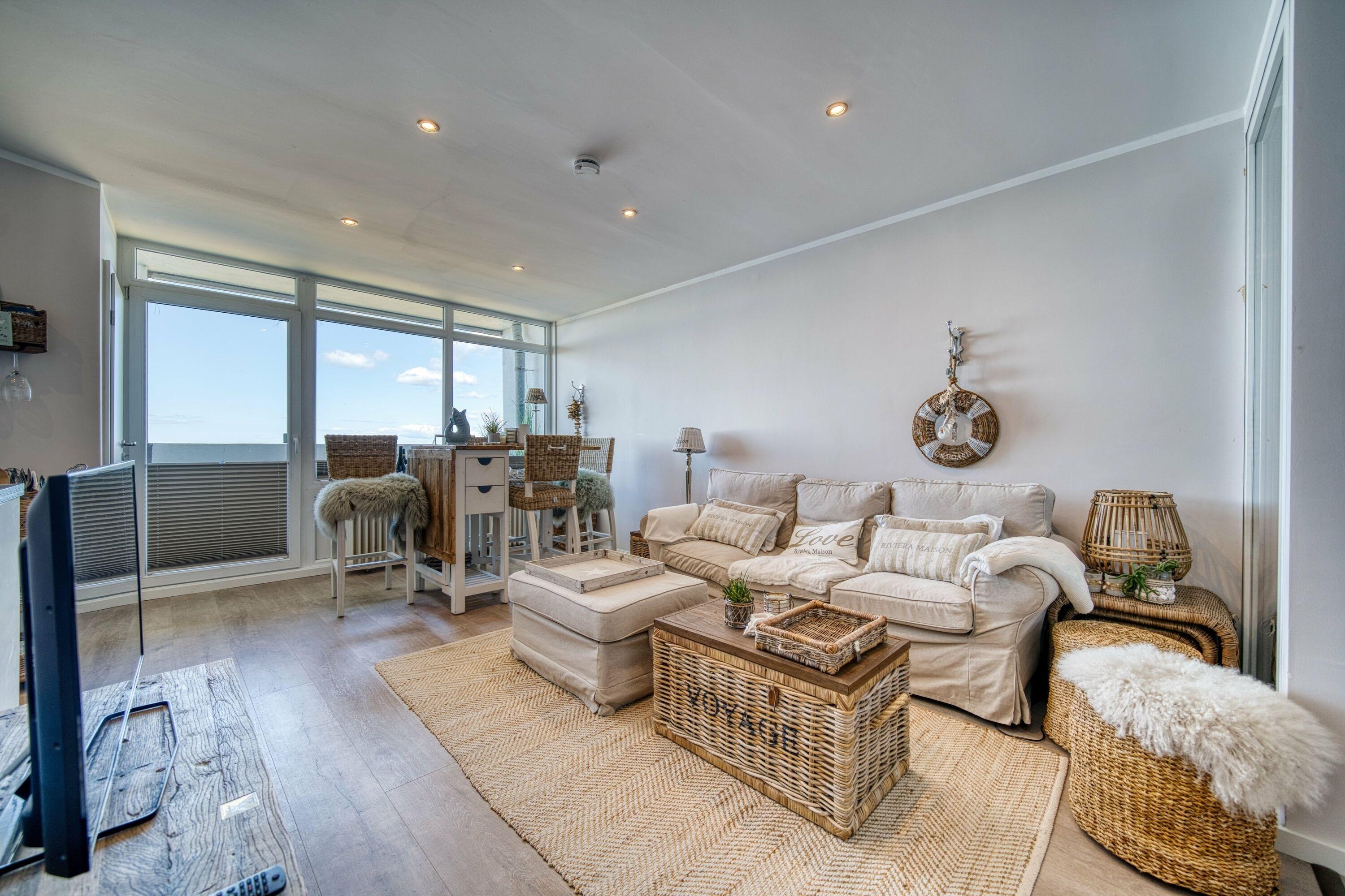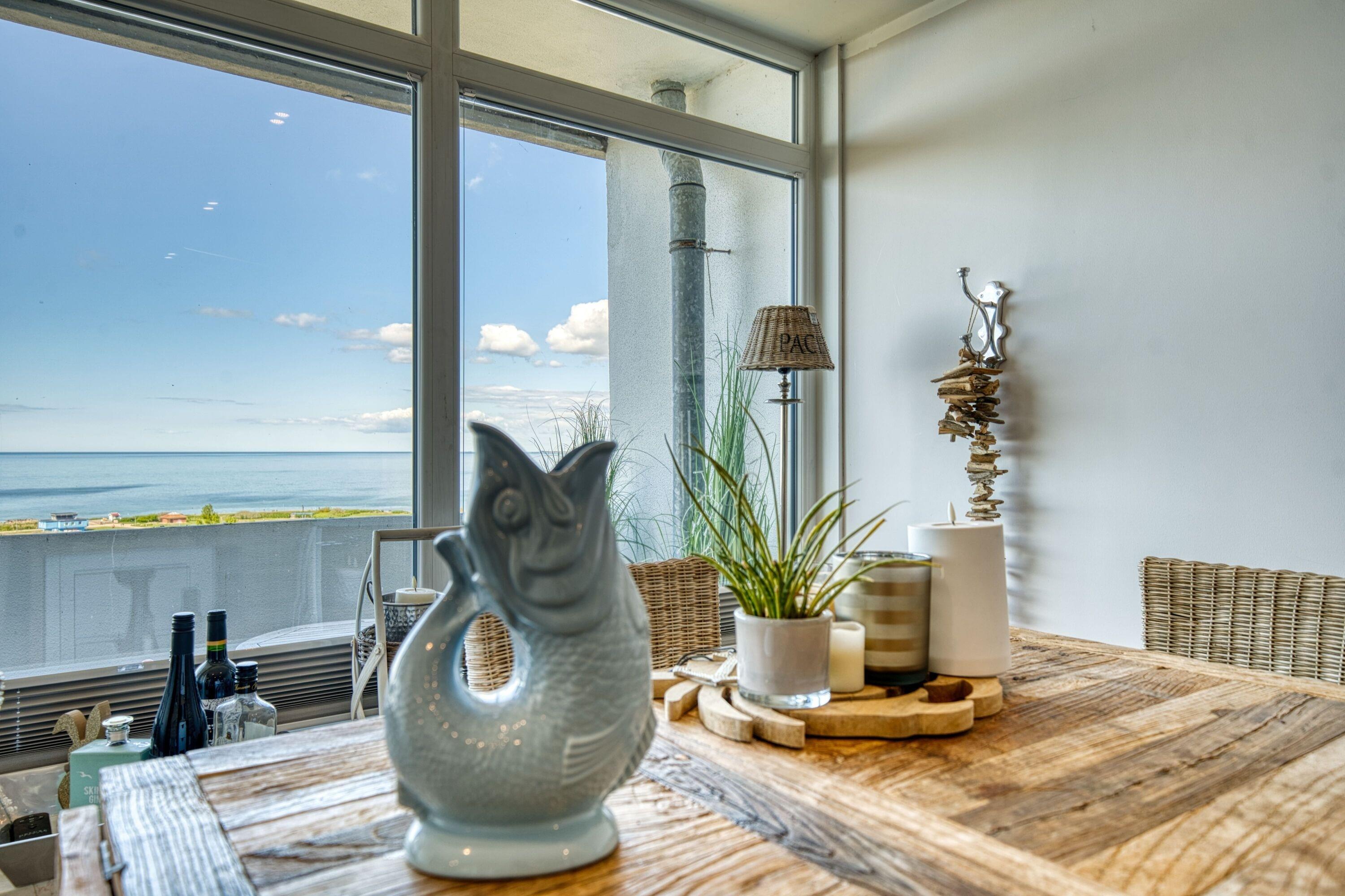 Exklusive Ferienwohnung im 12. OG mit atemberaubendem Ostseeblick. Platz für bis zu 4 Personen: Schlafbereich mit zwei Einzelbetten, Kinderzimmer mit Etagenbett. Stilvolle Einrichtung im Beachhouse-Stil mit hochwertigen Riveria Maison Möbeln, Vinylboden und hellem, einladendem Ambiente. Voll ausgestattete Küche mit Cerankochfeld, Backofen, Geschirrspüler. Modernes Bad mit allem Komfort. Südbalkon für entspannte Stunden und Essbereich mit Meerblick. Nur ca. 300?m zum Strand, kostenlose Parkplätze, Fahrstuhl und abschließbare Fahrradräume. WLAN inklusive, Nichtraucherwohnung, keine Haustiere. Perfekt für Familien und Paare, die Stil, Komfort und eine Top-Lage an der Ostsee schätzen.