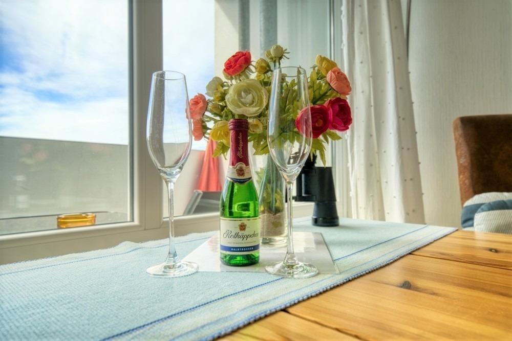 Moderne Wohnung für bis zu 3 Personen auf 45?m² mit Balkon und Ostseeblick. Wohn-Schlafbereich mit Doppelbett und Schlafcouch, Fliesenboden, Flachbild-TV. Küche komplett ausgestattet mit Ceranherd, Backofen, Mikrowelle, Geschirrspüler, Kühlschrank mit Gefrierfach, Toaster, Kaffeemaschine und Wasserkocher. Badezimmer mit Duschkabine und Handtuchtrockner. WLAN inklusive. Nichtraucherwohnung, keine Haustiere. Fahrstuhl vorhanden, Parkplatz hinter dem Ferienpark, Fahrradräume verfügbar. Ca. 300?m bis zum Strand. Perfekt für Paare oder kleine Familien, die Komfort und Nähe zum Meer suchen.