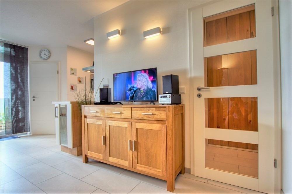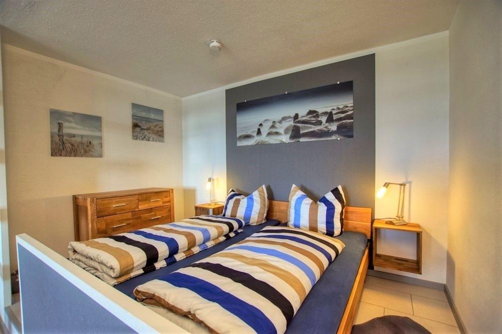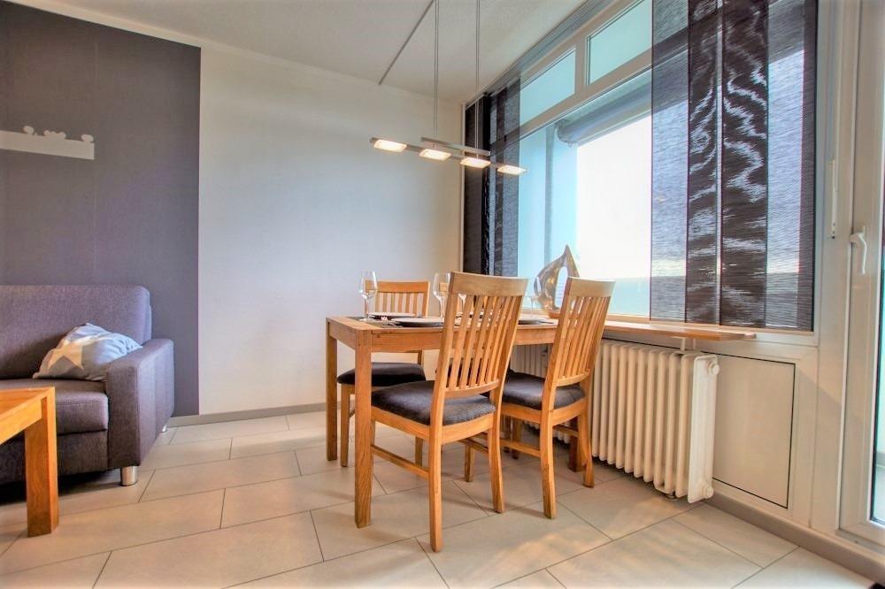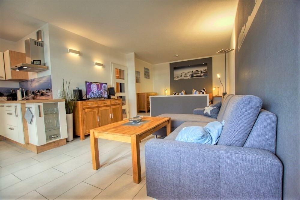 Sie verfügt über ein Wohn-Esszimmer mit TV und Radio, einen Elternschlafraum mit Doppelbett sowie ein Kinderzimmer mit Etagenbett. Die neue Küche ist komplett ausgestattet mit Kühlschrank, Backofen, Ceranfeld, Geschirrspüler, Wasserkocher und Toaster. Das Bad bietet WC und Duschkabine mit niedrigem Einstieg. Kostenloses WLAN ist vorhanden. Nichtraucherwohnung, keine Haustiere. Fahrstuhl, kostenfreier Parkplatz und ca. 300?m zum Strand über die Promenade.