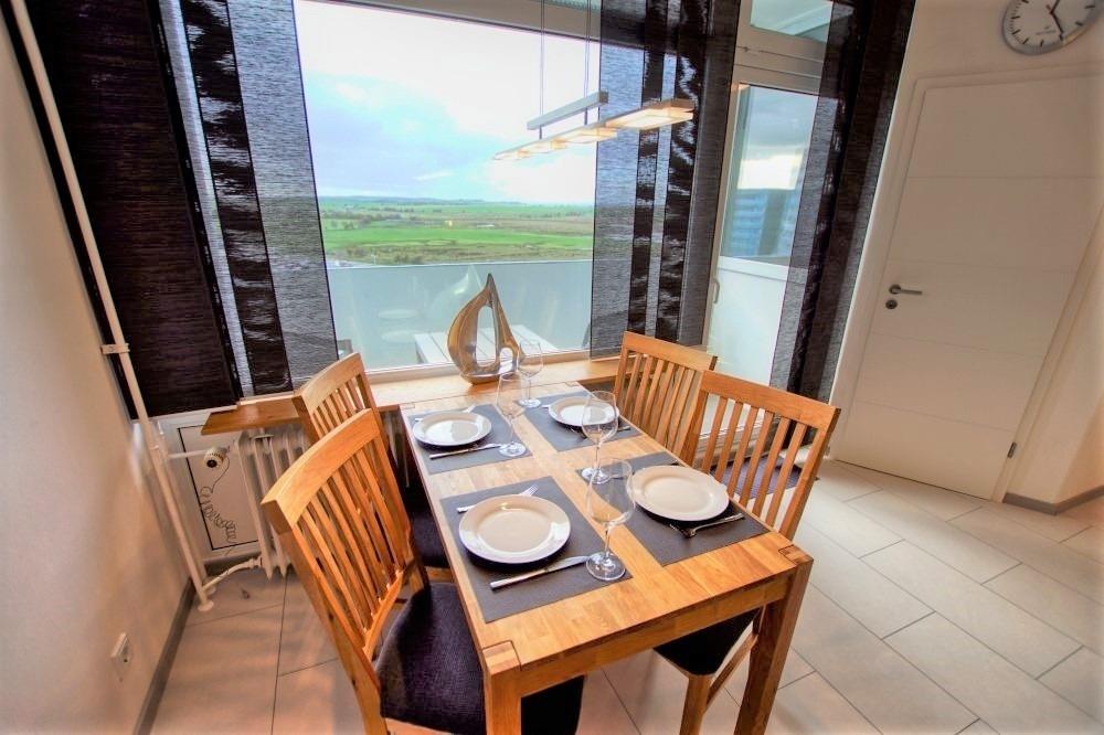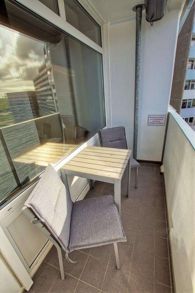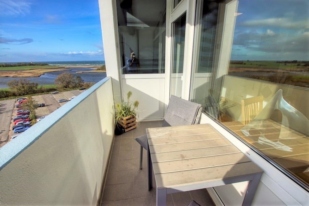 Die Wohnung befindet sich im Haus D, in der 7. Etage, mit Südwestbalkon und Blick auf Salzwiesen und Ostsee. Auf ca. 45?m² bietet sie Platz für bis zu 4 Personen.