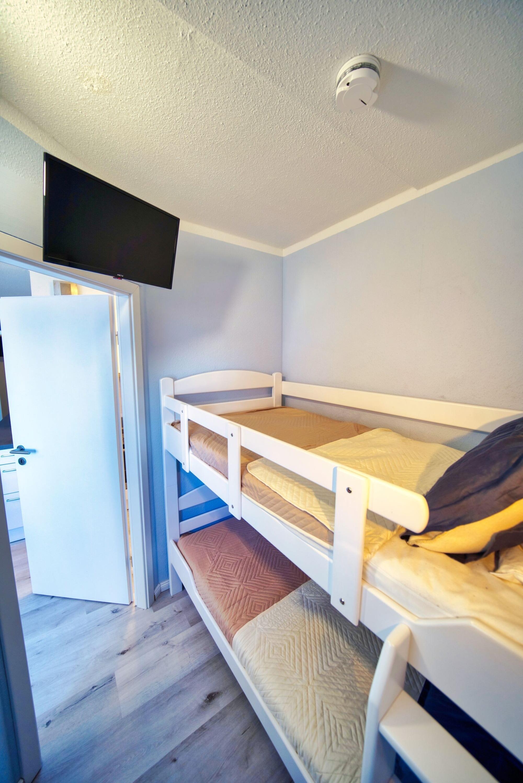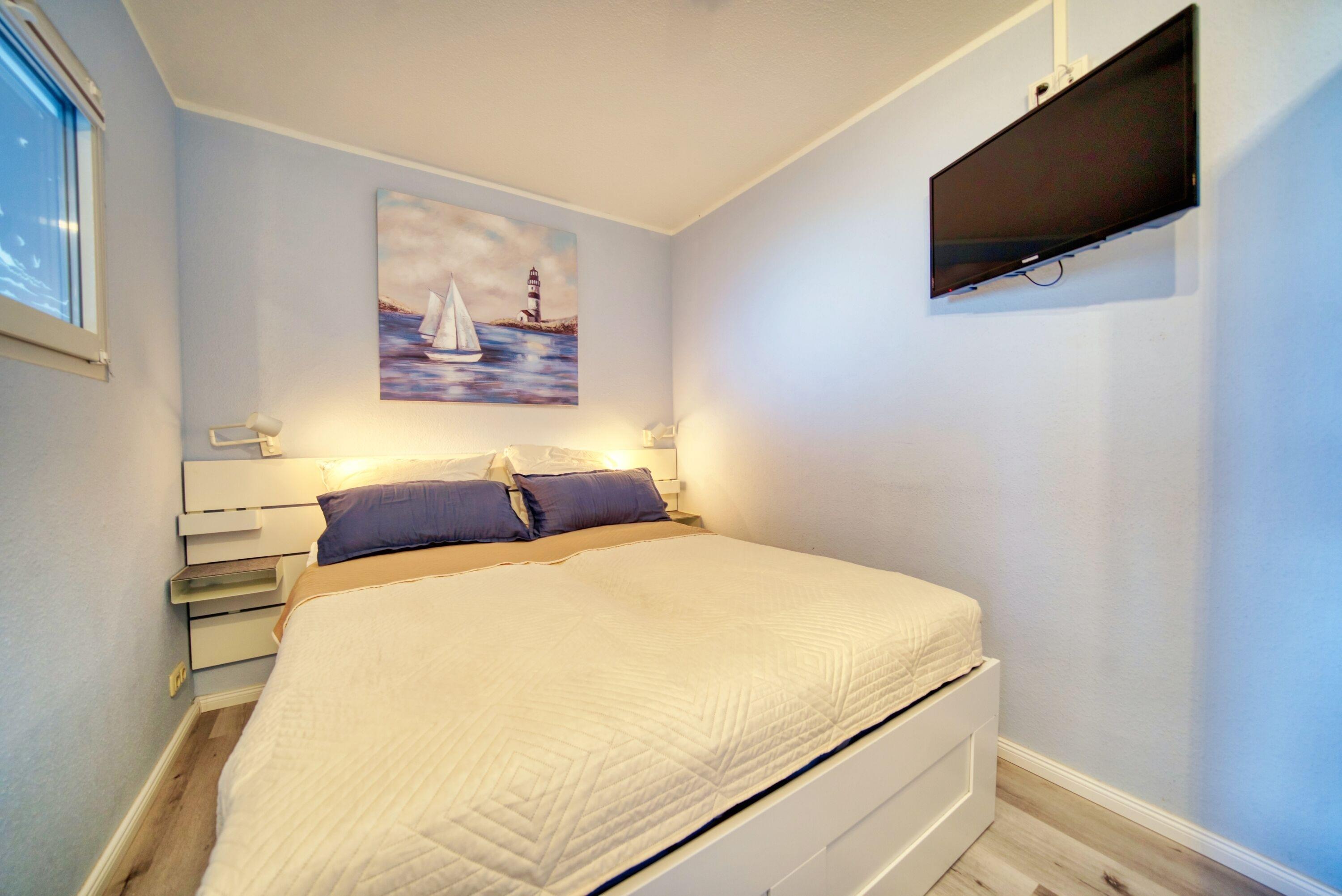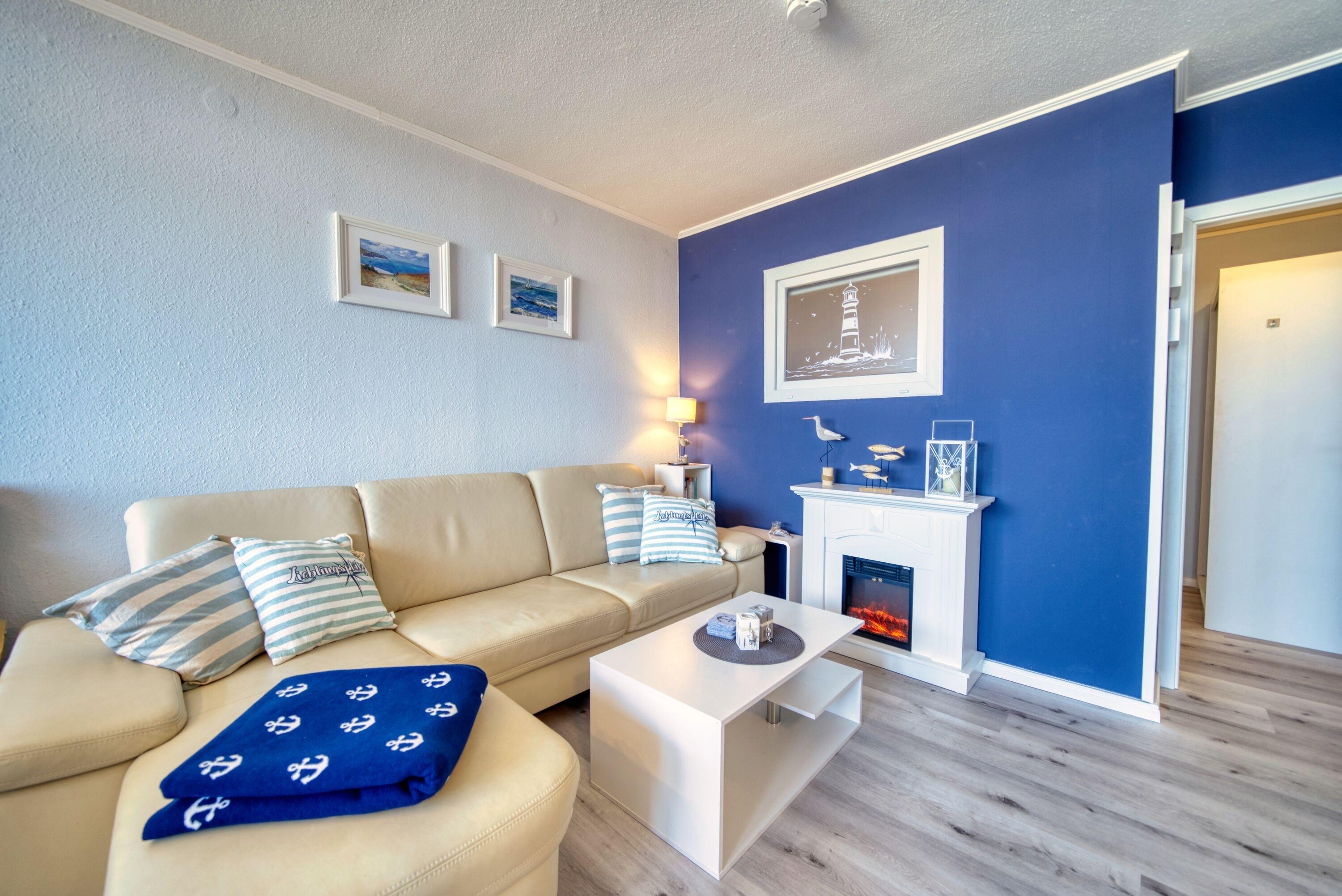 Der Wohn-/Essbereich verfügt über Ledersofa, Flachbild-TV, Radio, Essbereich für 4 Personen sowie eine große Spielesammlung, Bücher und Gesellschaftsspiele. Ein separater Schlafbereich mit Doppelbett (verstellbare Lattenroste) sorgt für Komfort. Die Küche ist ausgestattet mit Ceranherd, Backofen, Mikrowelle, Kühlschrank mit Gefrierfach, Geschirrspüler und Filterkaffeemaschine. Das Bad bietet WC, Waschbecken und Dusche mit niedrigem Einstieg. WLAN ist inklusive. Nichtraucherwohnung, keine Haustiere, Fahrstuhl, Fahrradräume und Parkplatz vorhanden. Der Strand ist ca. 300?m entfernt, das Aktiv-Hus mit Schwimmbad, Sauna und Wellness fußläufig erreichbar.
