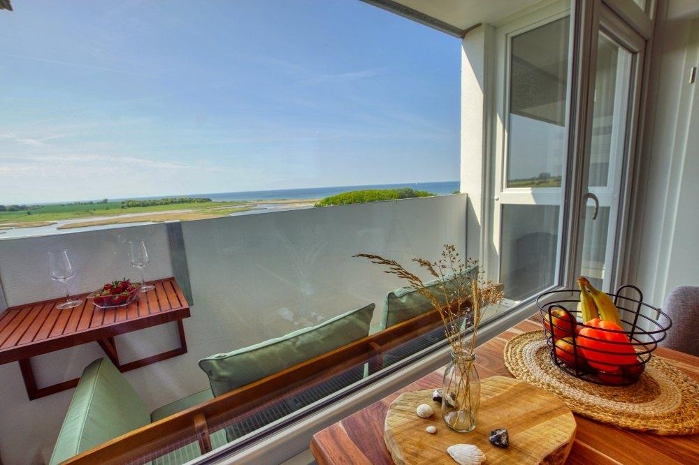 Die barrierearme Ferienwohnung „Naturblick“ in der 8. Etage bietet einen Balkon zur Westseite mit unvergleichbarem Meerblick, ideal für Sonnenuntergänge. Offener Wohn-Essbereich mit Smart TV, voll ausgestatteter Küche, zwei separate Schlafzimmer (Boxspringbett, Etagenbett), modernes Bad mit Regendusche und Stauraum. Balkon mit Sitzbank und klappbarem Tisch, kostenloses WLAN, Aufzug und kostenfreier Parkplatz. Nichtraucher, keine Haustiere, geeignet für max. 4 Personen. Umgebung: Naturstrand, Badestrand ca. 300?m, Restaurants, Cafés und Erlebnis-Seebrücke 2?km. Ferienpark: Aktiv-Hus mit Schwimmbad, Sauna, Wellness, Kinderspielwelt, Fahrradverleih, Adventure Golf, SUP, Windsurfen und Segeln je nach Saison.